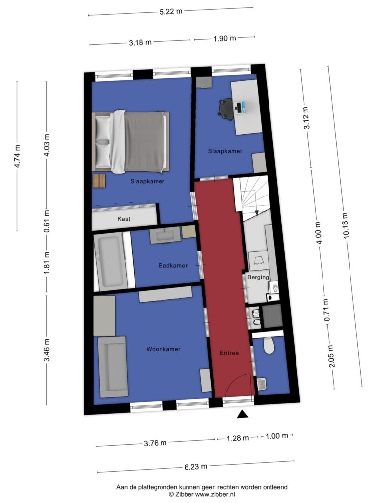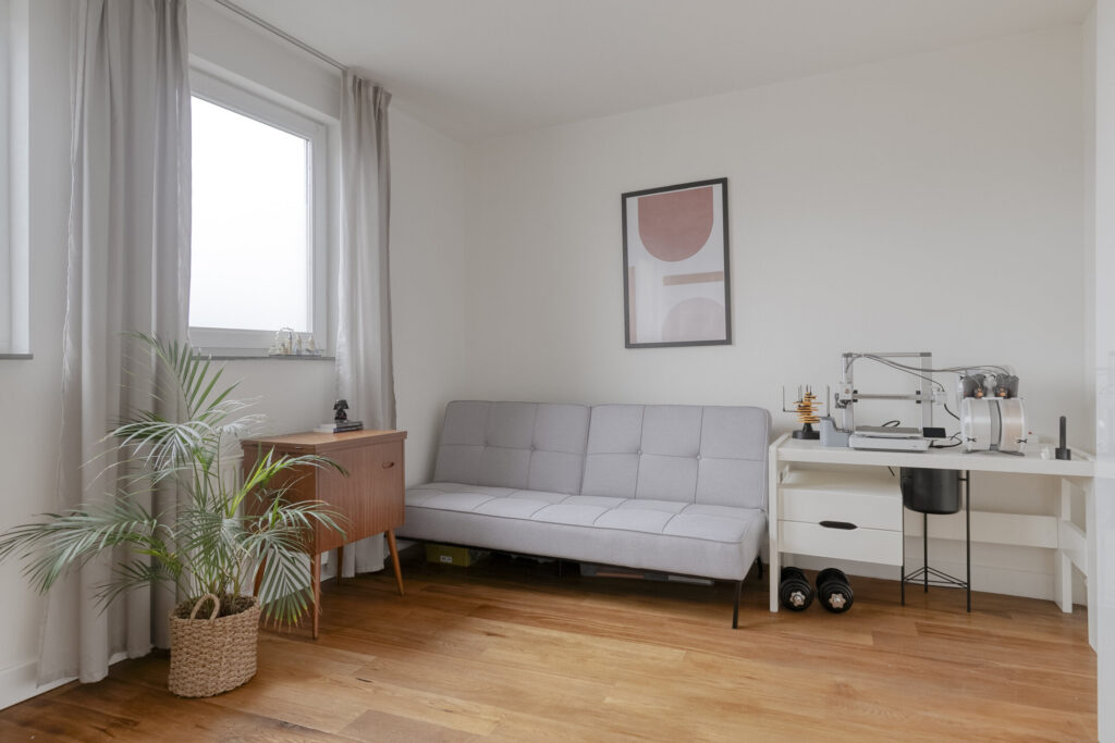 Slaapkamer II: Deze ligt aan de achterzijde en heeft een oppervlakte van ca. 13m². Ook hier weer veel daglicht.