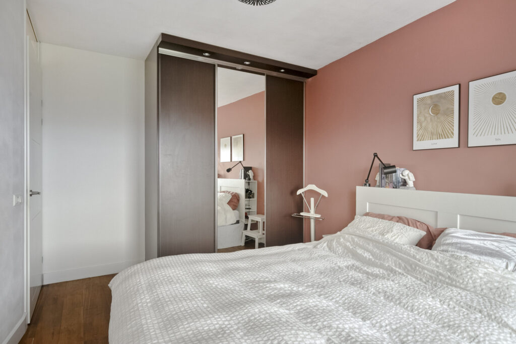 Slaapkamer I: De hoofdslaapkamer is ca. 14m² groot en uitgerust met een vaste wandkast met spiegel en inbouwspots. Door de grote ramen is er veel lichtinval.