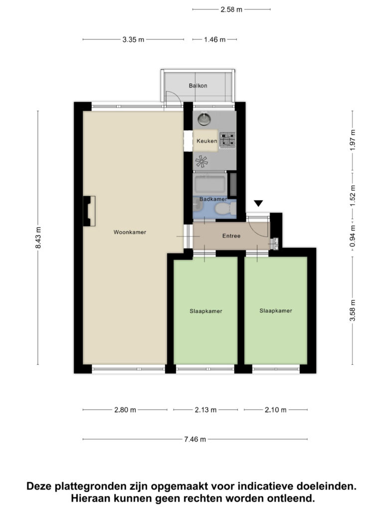 • 2 (voorheen 3) slaapkamers