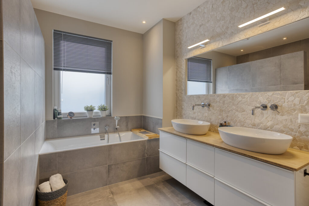 Centraal op de eerste verdieping, tussen slaapkamer 2 en 3, bevindt zich de stijlvolle badkamer – een ruimte die direct rust en luxe uitstraalt.