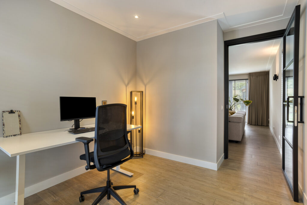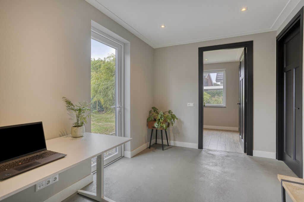 Dankzij de ligging aan de voorkant van de woning is dit een fijne, afgezonderde plek om te werken of te studeren. Of juist ideaal als speelkamer voor de kinderen, omdat je dankzij de glazen deur altijd zicht houdt op de ruimte.