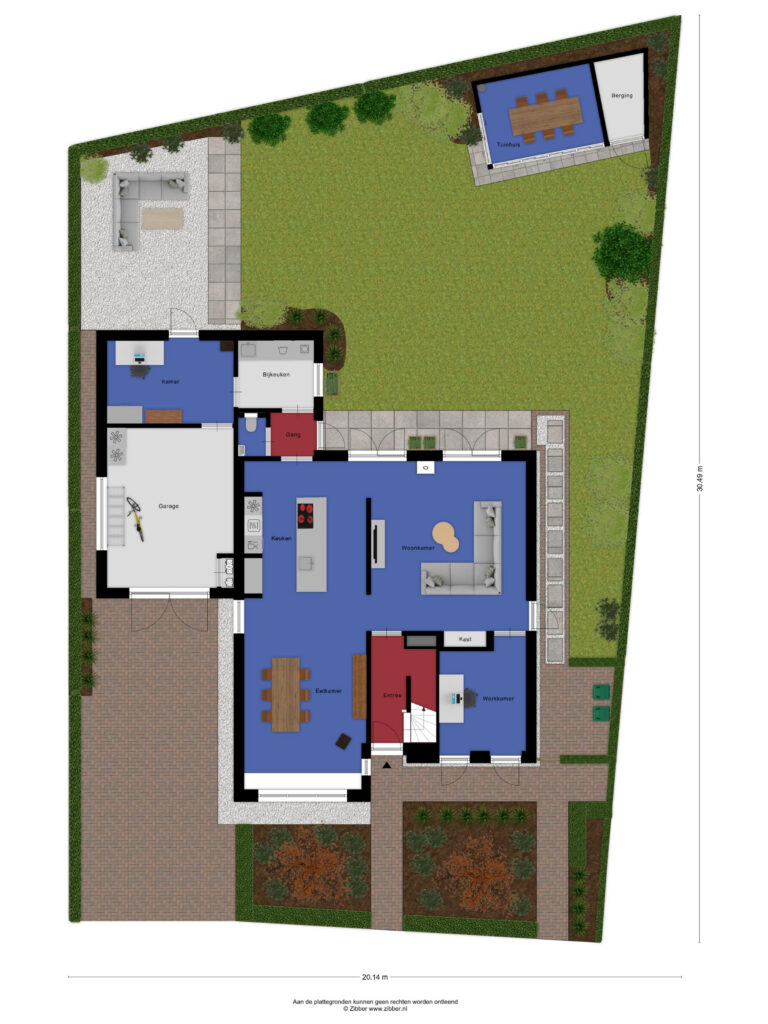 Aan de achterzijde ligt een tweede extra kamer met directe toegang tot de tuin. Deze kamer is eveneens strak afgewerkt en voorzien van veel lichtinval.