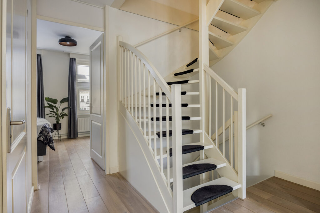 Via de trap met fraaie traploper is de overloop bereikbaar. Deze is licht en overzichtelijk en biedt toegang tot drie slaapkamers en de badkamer.