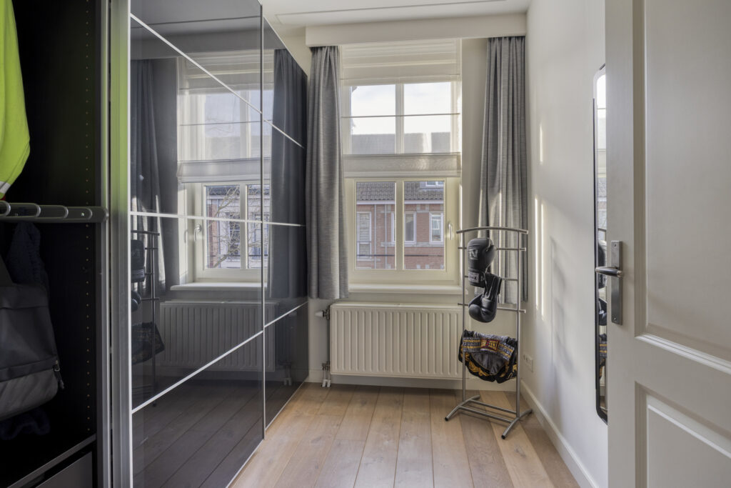 Also located at the front, this room is currently used as a walk-in wardrobe. With a surface area of approximately 6 m² and a large tilt-and-turn window, it is also perfectly suitable as a home office, nursery or guest room.