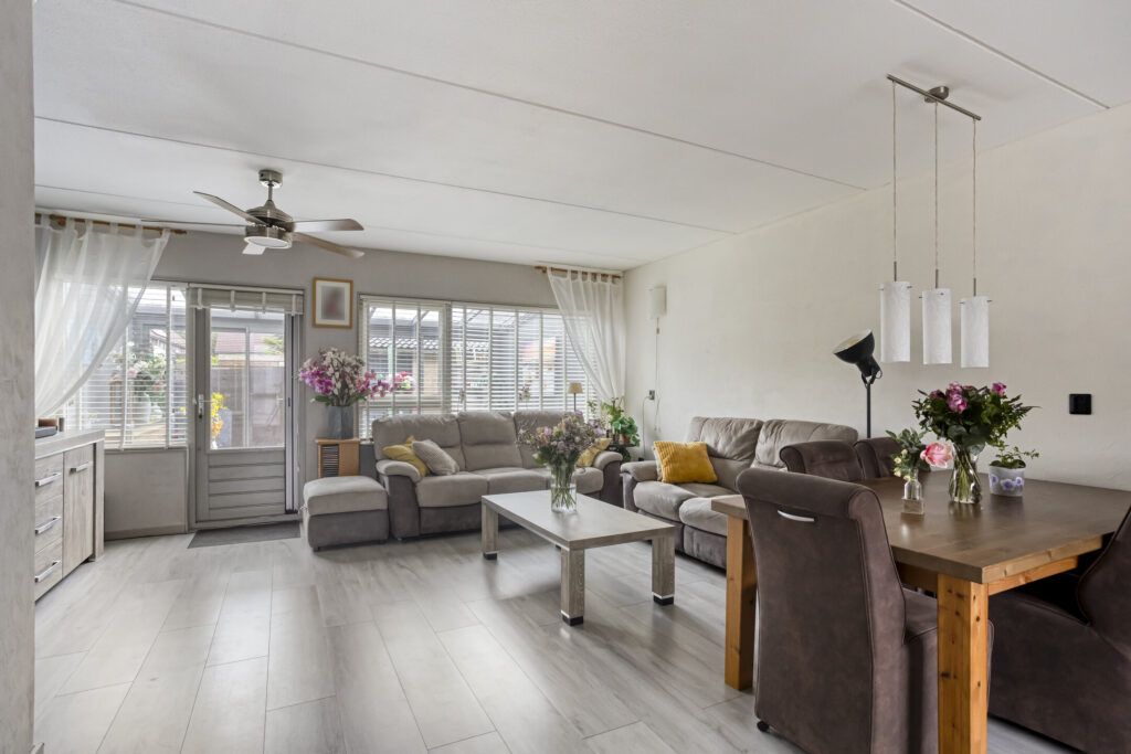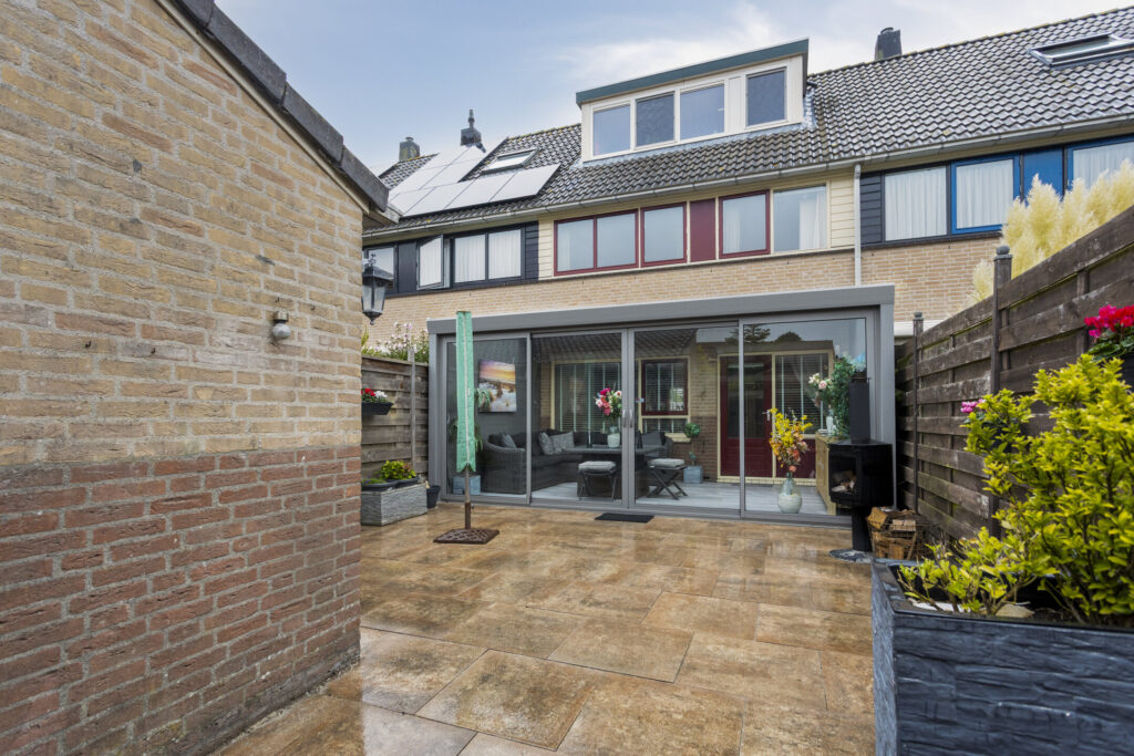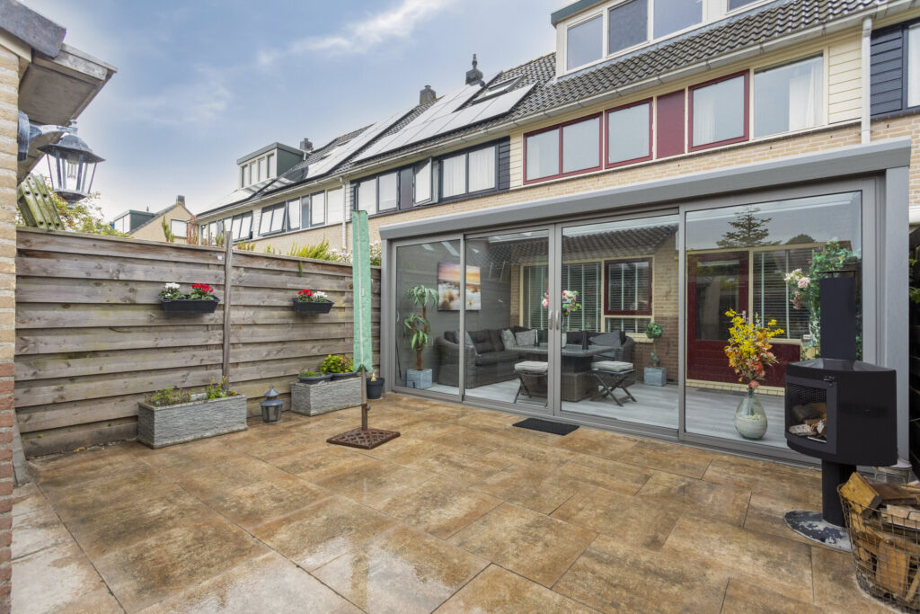 Bij binnenkomst valt direct de woonkamer op, die door de open keuken aan de voorzijde en de hoogwaardige serre van circa 18 m² een warme en royale leefruimte vormt. Dankzij de serre is er een fijne overgang naar de tuin, waardoor binnen en buiten mooi in elkaar overlopen. De keuken is voorzien van diverse inbouwapparatuur, wat koken hier tot een plezierige bezigheid maakt.