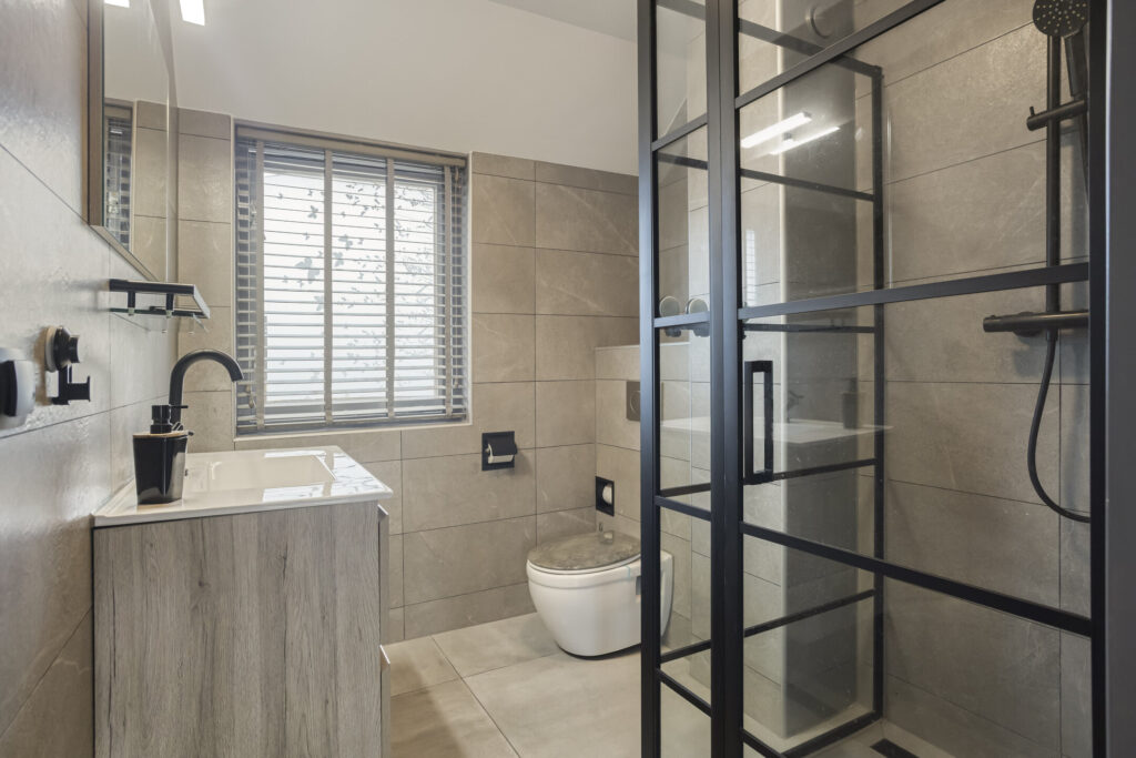 Eerste verdieping: overloop, drie slaapkamers en een badkamer (2022) v.v. toilet, douchehoek en wastafel met meubel.