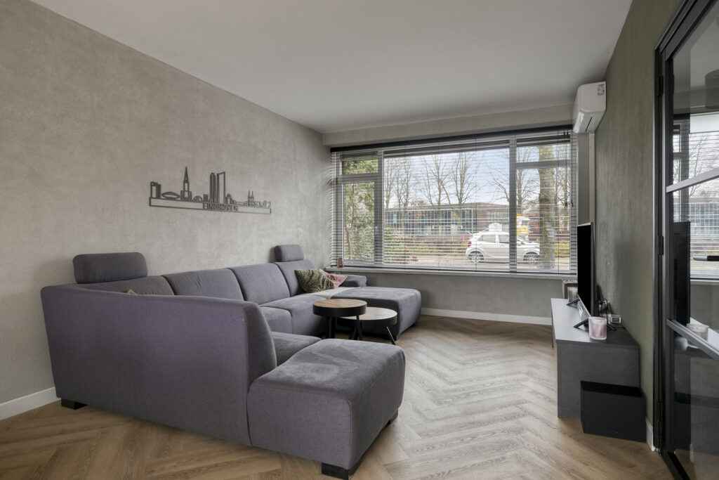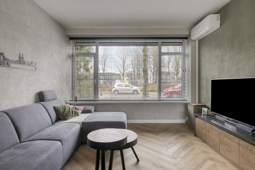 De woonkamer biedt voldoende ruimte voor zowel een comfortabele zithoek als een royale eethoek. Grote raampartijen zorgen voor een prettige lichtinval. De ruimte is voorzien van airconditioning.