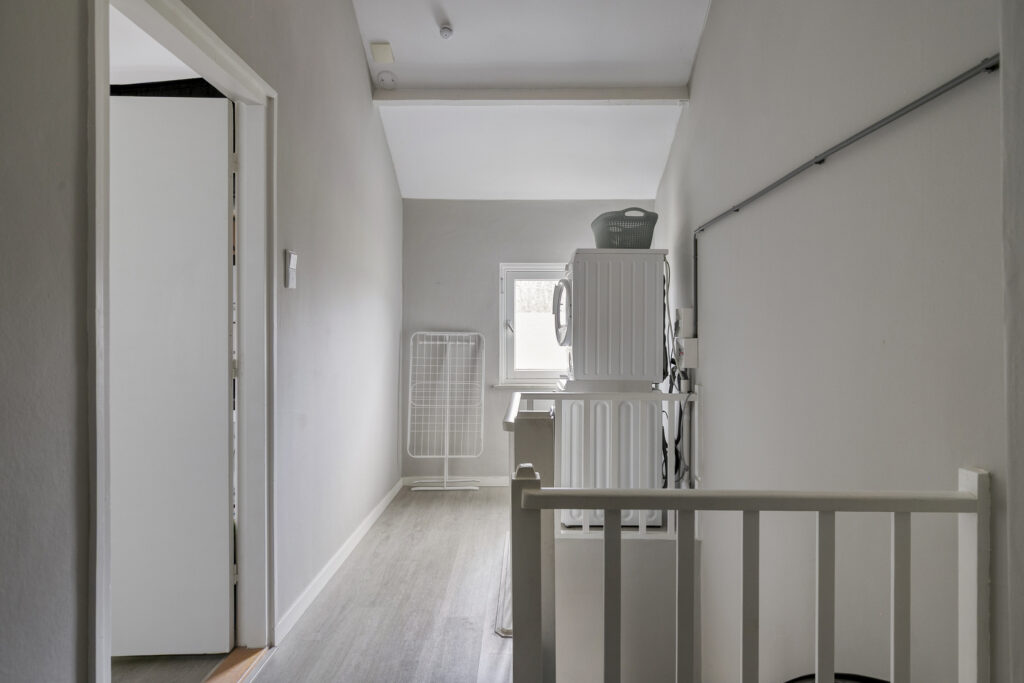 Overloop met toegang tot een tweetal slaapkamers, een bergkast, een separate toiletruimte en de badkamer.