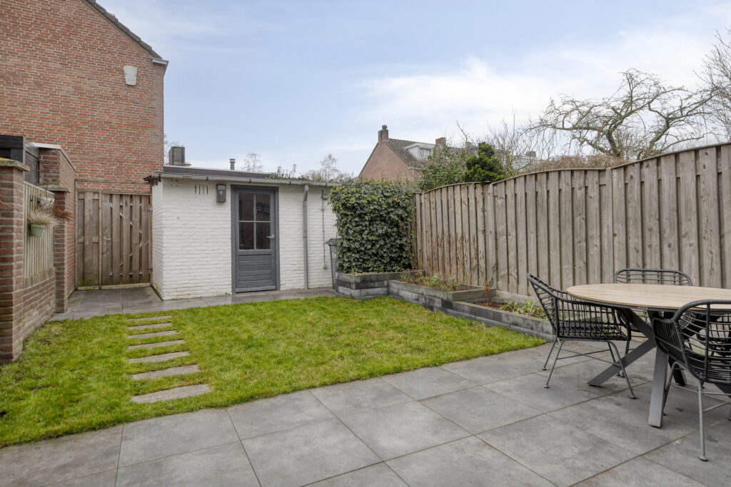 Voortuin en achtertuin met vrijstaande berging en een eigen achterom. De achtertuin is gelegen op het zuidwesten en biedt rondom volop privacy.