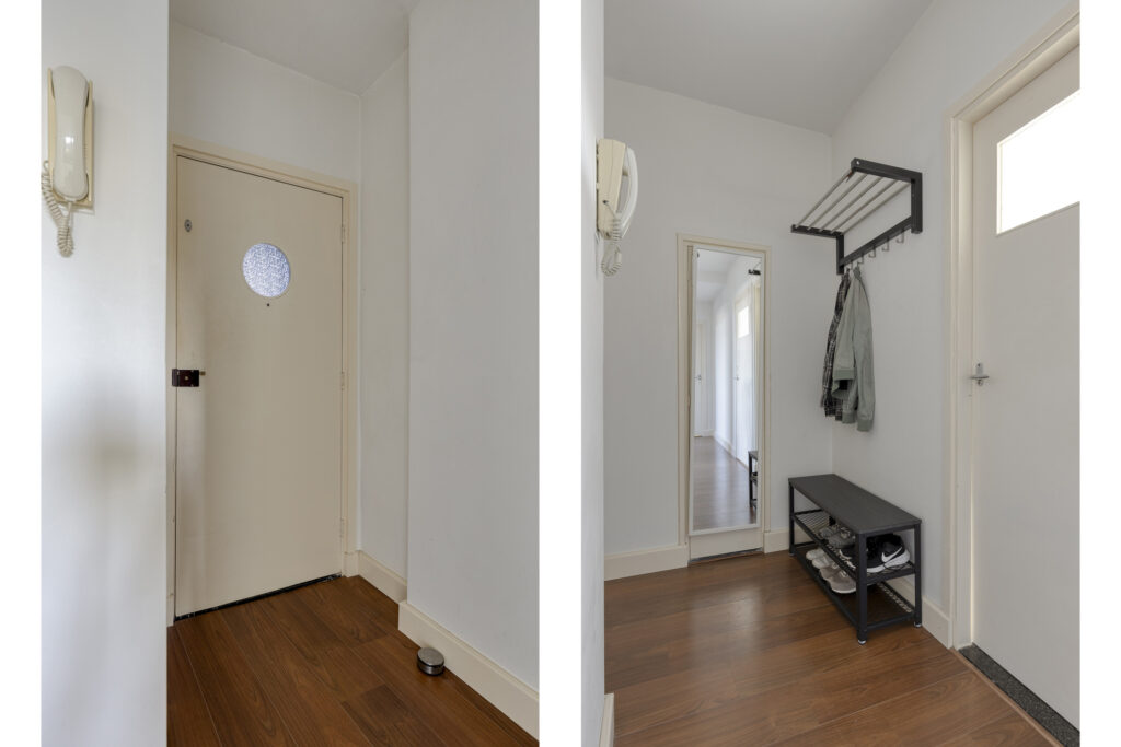 Via de entree bereikt u de hal met meterkast (voorzien van 4 groepen en 2 aardlekschakelaars) en intercominstallatie. De hal is afgewerkt met hoge plinten en een nette laminaatvloer.