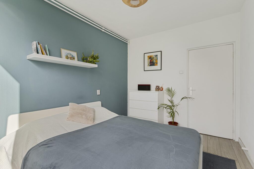 Het appartement beschikt over twee slaapkamers gelegen aan de achterzijde, waarvan 1 thans in gebruik als kastenkamer. Beide slaapkamers zijn voorzien van kunststof kozijnen (2015), strakke wand- en plafondafwerking, een laminaatvloer en vanuit beide slaapkamers is een prachtig vrij uitzicht over het groen.
