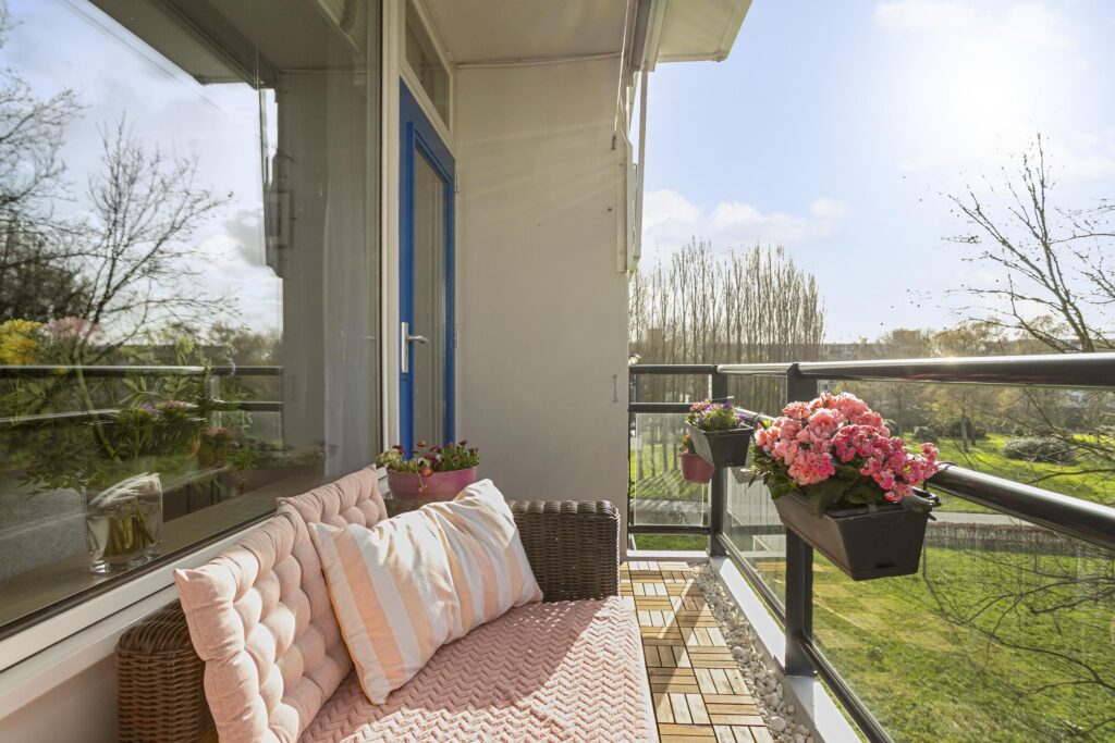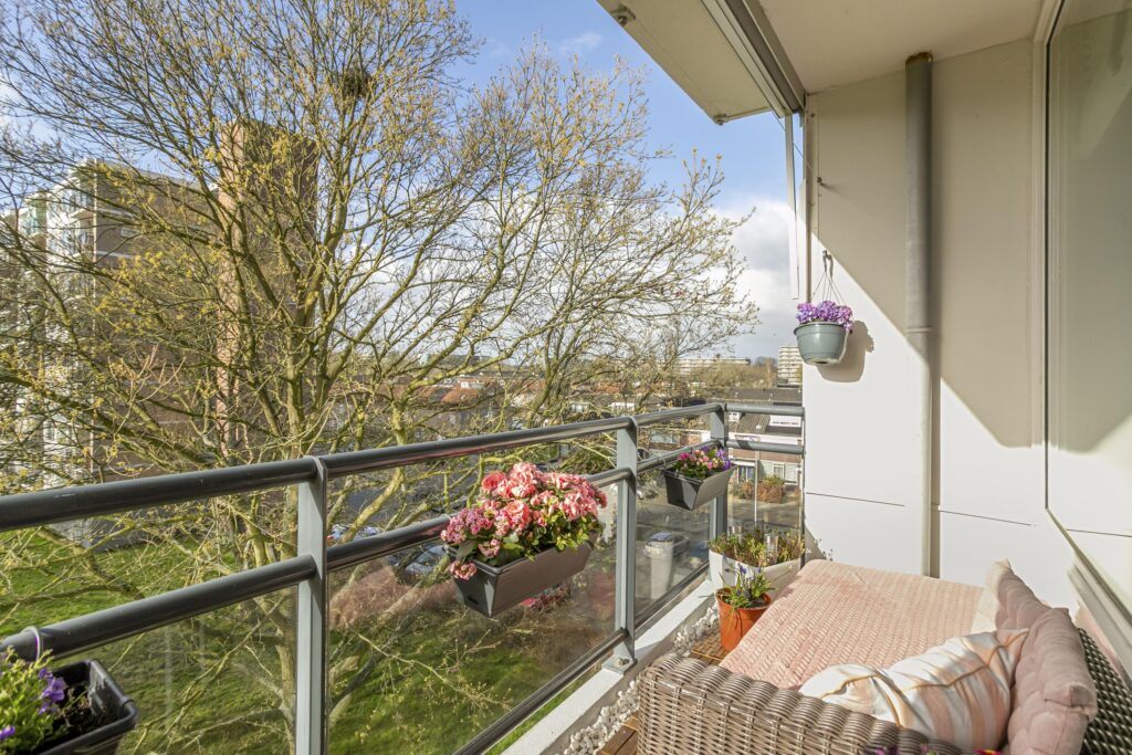 – Royaal balkon op het zuiden gesitueerd en in alle rust gelegen met vrij uitzicht aan de voor- en achterzijde