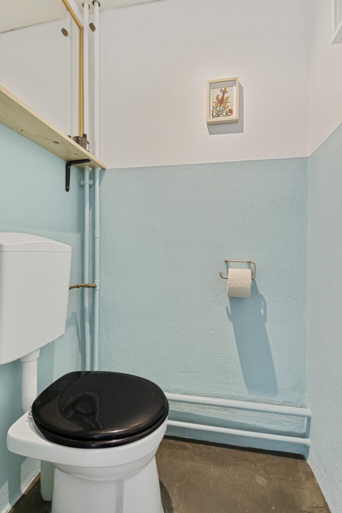 De toiletruimte beschikt over een closet en is in een neutrale kleurstelling afgewerkt.