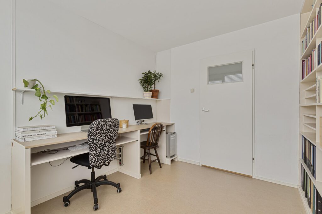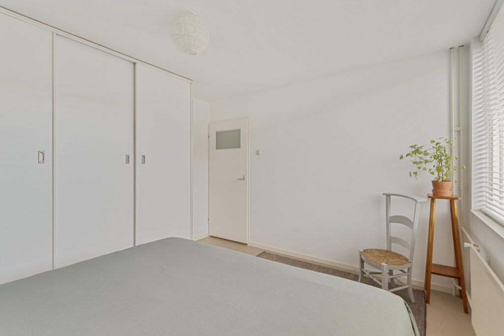 De slaapkamers zijn allen voorzien houten (merbau) kozijnen met isolerende beglazing, radiator en strakke wand- en plafondafwerking; slaapkamer I gelegen aan de achterzijde en thans in gebruik als kantoorkamer en voorzien van een marmoleum vloer; slaapkamer II eveneens gelegen aan de achterzijde en voorzien van laminaatvloer; (ouder) slaapkamer III gelegen aan de voorzijde met praktische vaste kastenwand en marmoleum vloer.