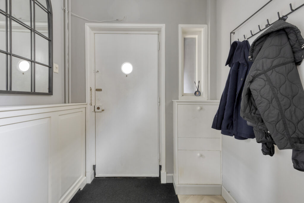 Via de overdekte entree kom je binnen in de ontvangsthal. Hier bevindt zich de trap naar de eerste verdieping en een loopdeur naar de living.