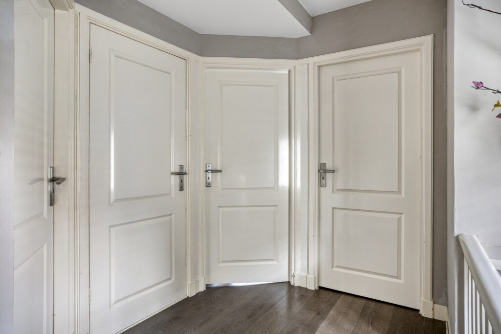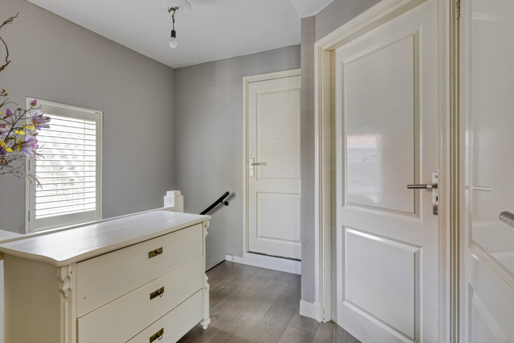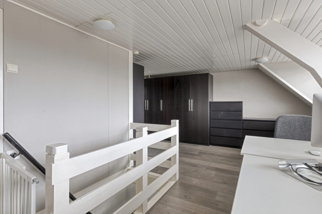 Overloop met toegang tot een drietal slaapkamers en de badkamer. De gehele verdieping is afgewerkt met een nette laminaatvloer. Alle slaapkamers hebben een eigen inbouwkast.