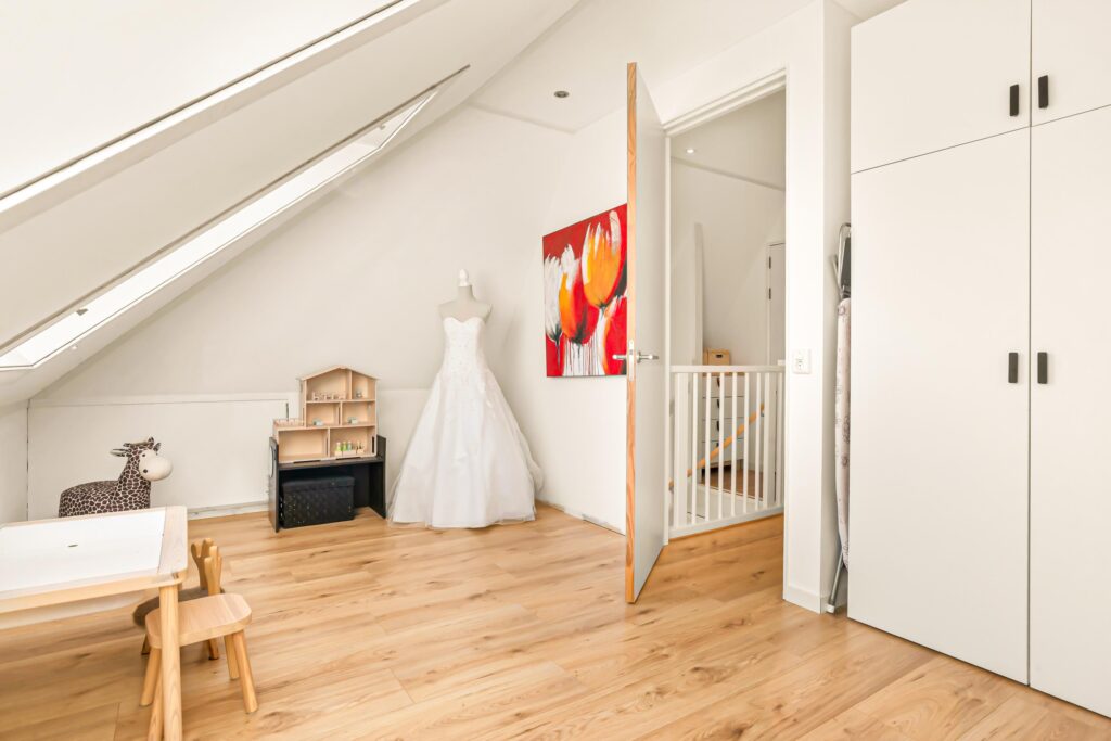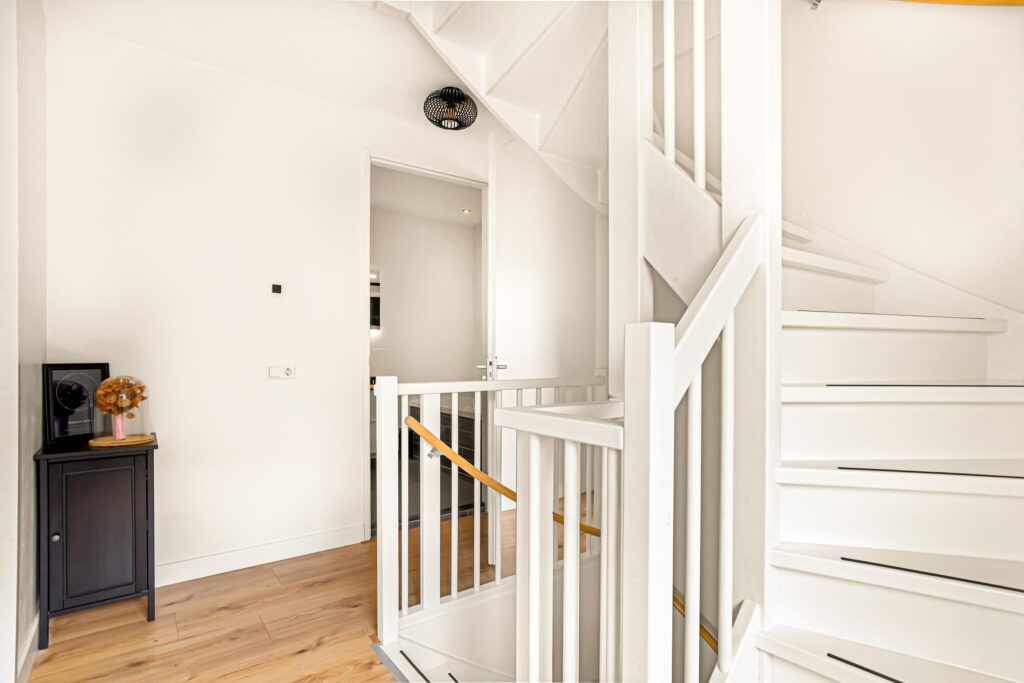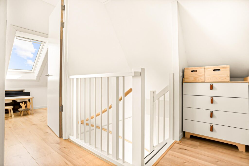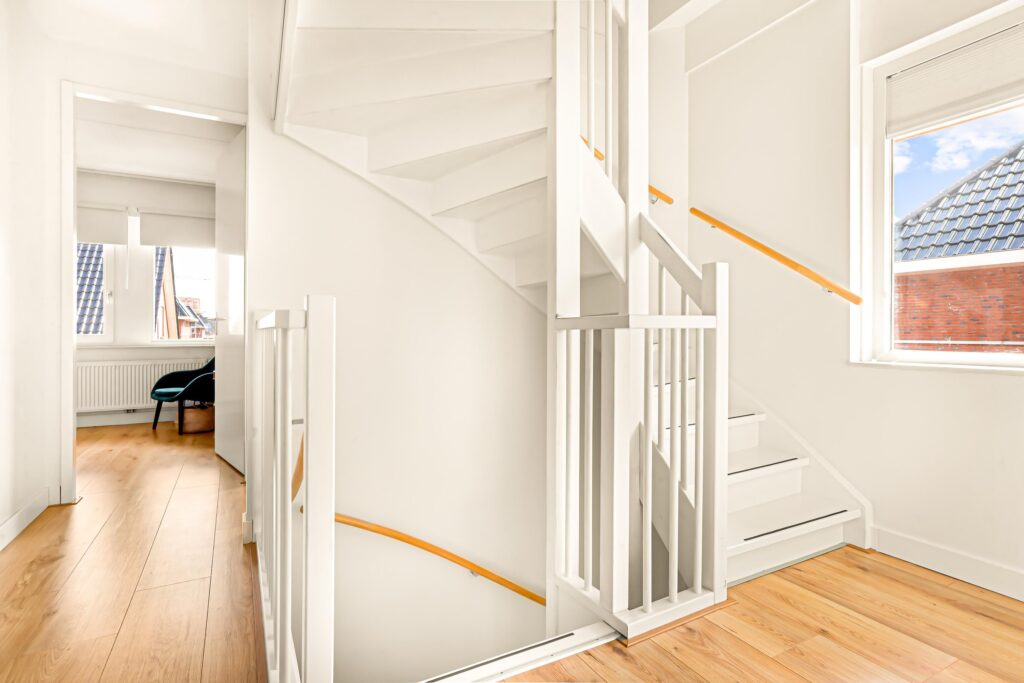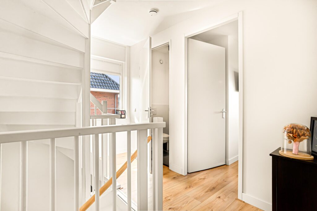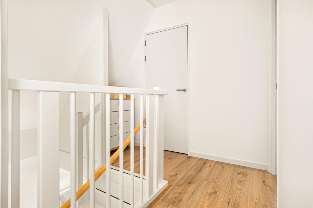 Op de eerste verdieping vindt u drie comfortabele slaapkamers, een separaat toilet en een luxe, ruime badkamer met ligbad, inloopdouche en wastafelmeubel. De ouderslaapkamer is opnieuw ingedeeld door het plaatsen van een scheidingswand, waardoor er een sfeervolle slaapkamer en een praktische inloopkast zijn ontstaan. De tweede verdieping is net zo indrukwekkend en beschikt over een overloop, was- en stookruimte en nog eens twee slaapkamers, waarvan één is voorzien van een grote dakkapel aan de achterzijde. Daarnaast biedt de vliering extra opbergruimte voor spullen die u minder vaak nodig heeft.