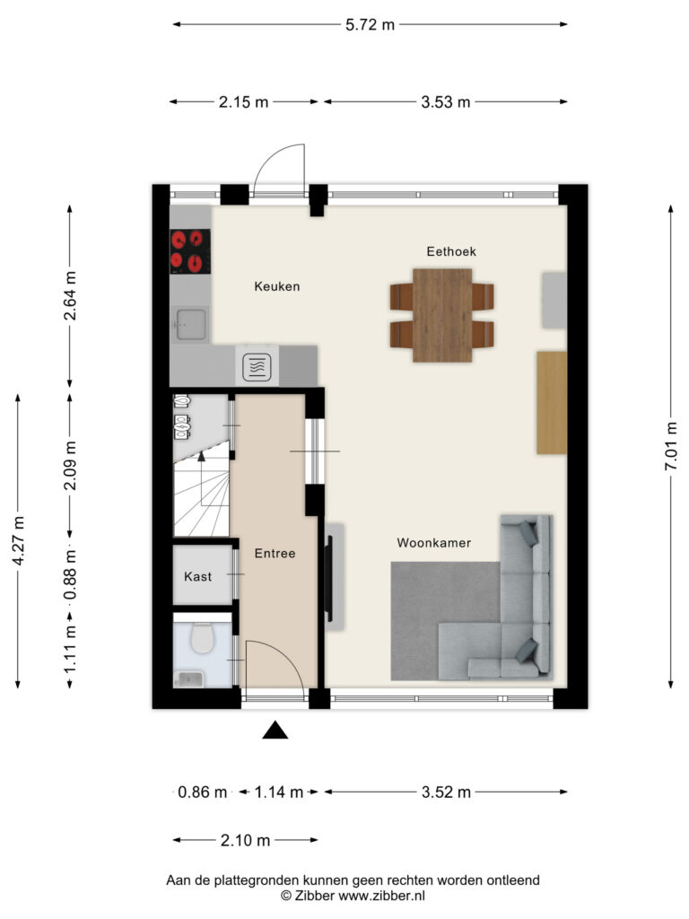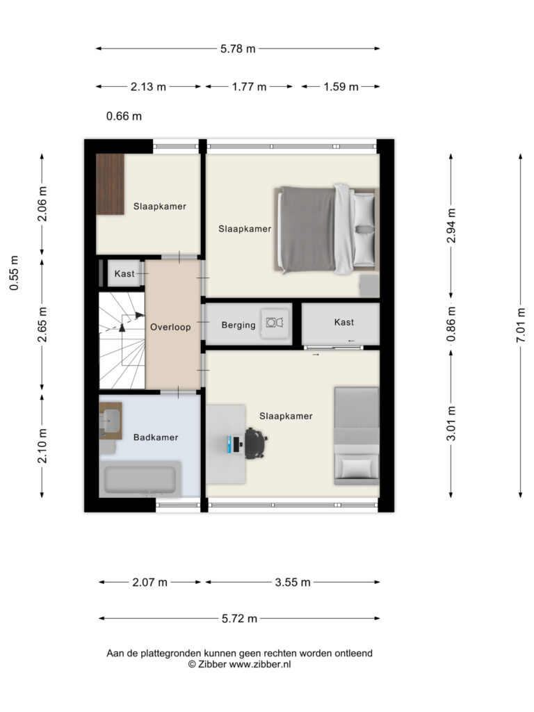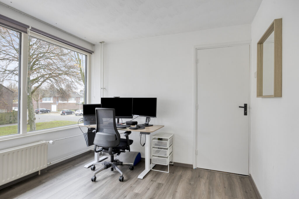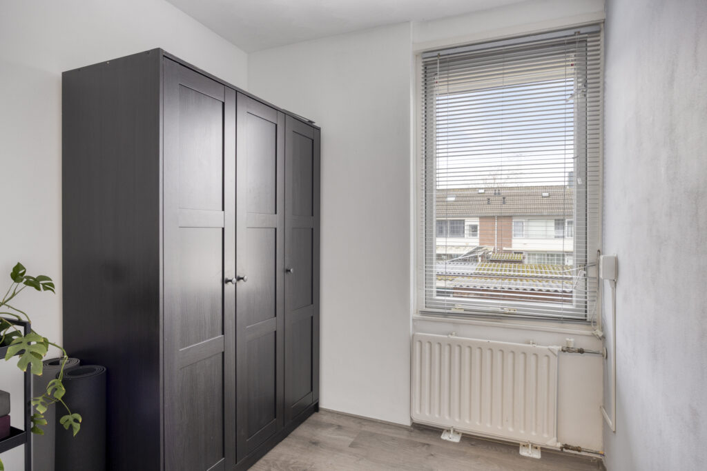 • Derde slaapkamer (ca. 2,12 × 2,12 m), eveneens aan de achterzijde.