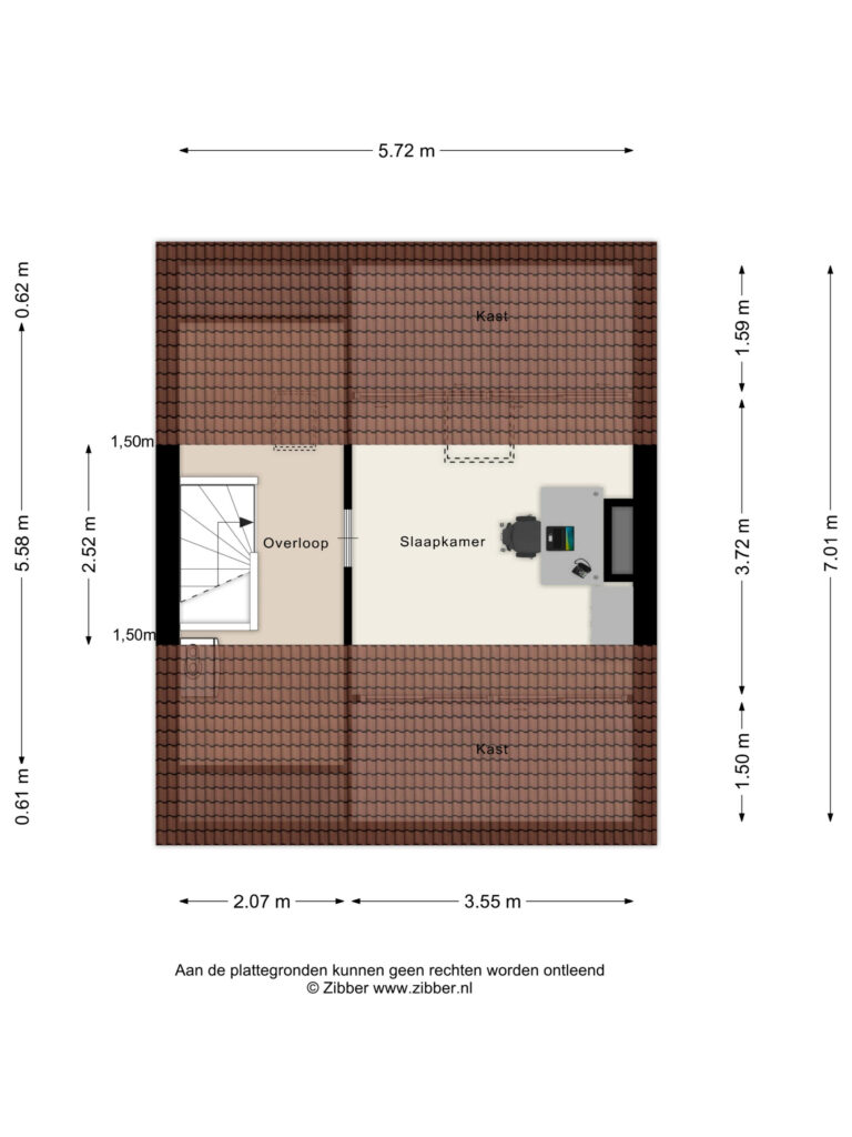 Via vaste trap bereikbaar. Gehele dak is van buiten af na geïsoleerd.