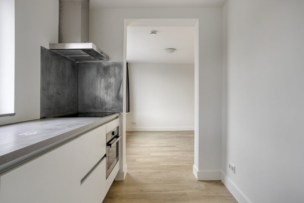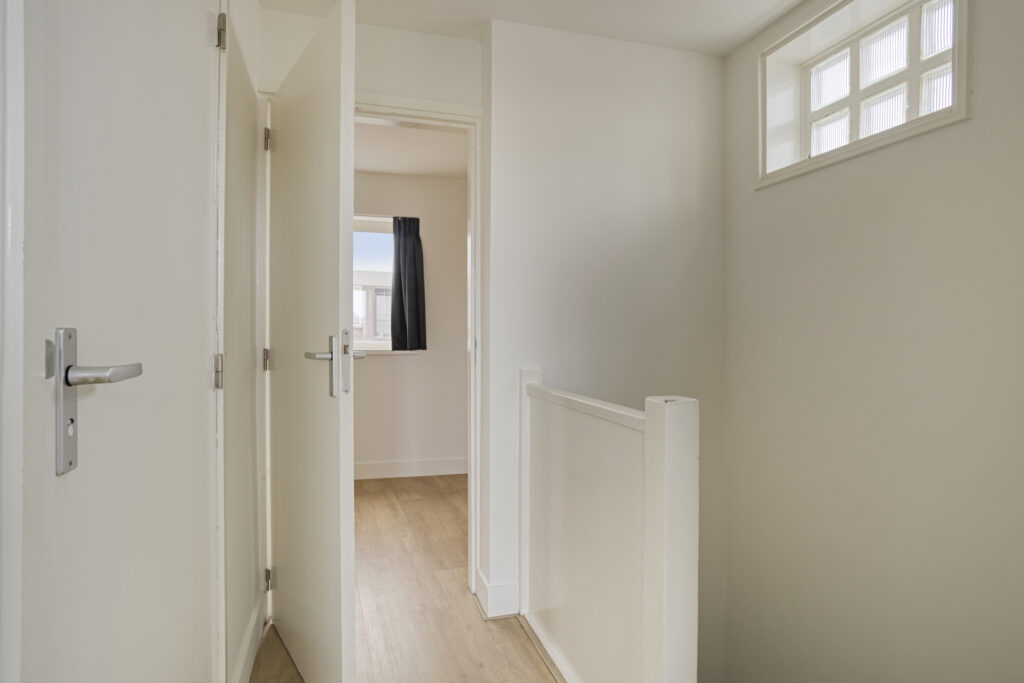 Via de ruime overloop bereik je de verschillende vertrekken. De lichte woonkamer met grote raampartijen is verbonden met een moderne, halfopen keuken, volledig uitgerust met koelkast, inductiekookplaat, afzuigkap, RVS spoelbak, combi-oven en vaatwasser – ideaal voor wie houdt van gemak en design.