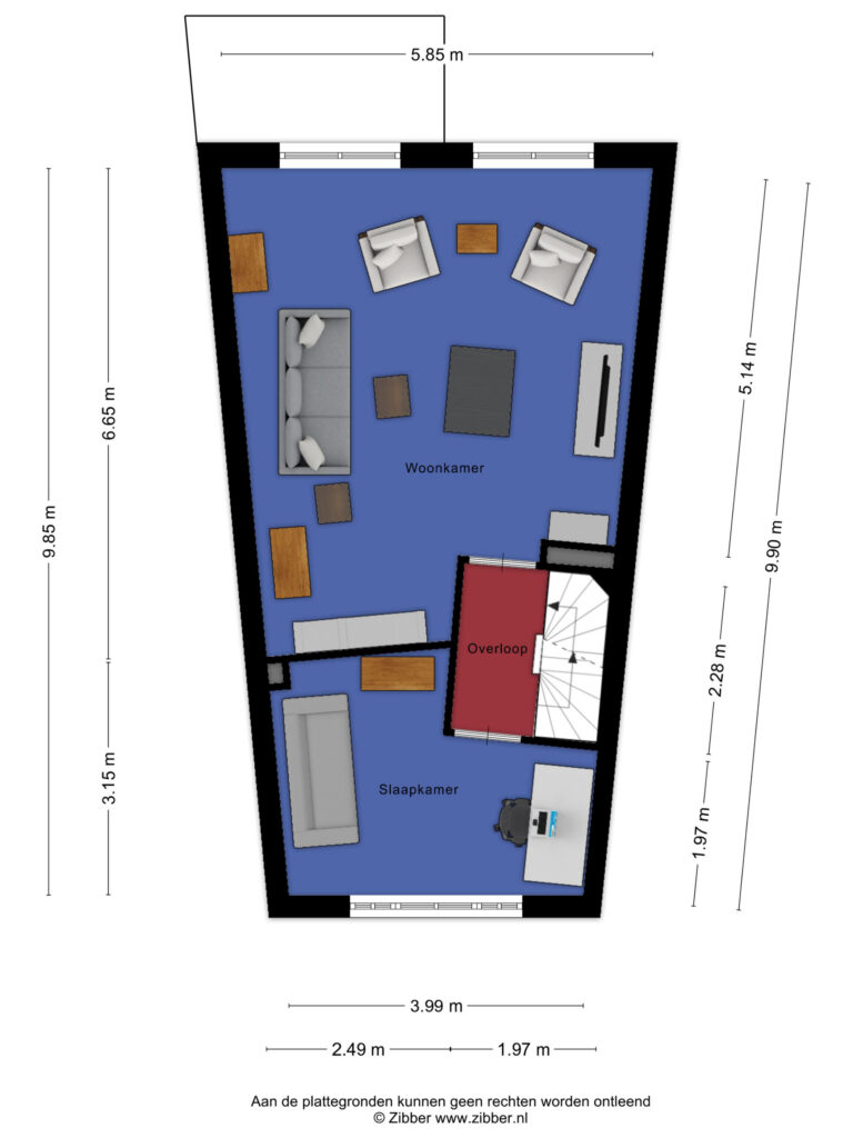 De indeling van deze verdieping biedt mogelijkheden om een extra slaapkamer te realiseren.
