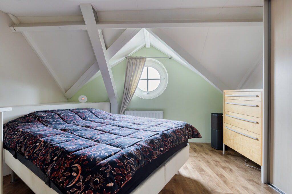 De ruime zolderverdieping wordt momenteel gebruikt als master bedroom.