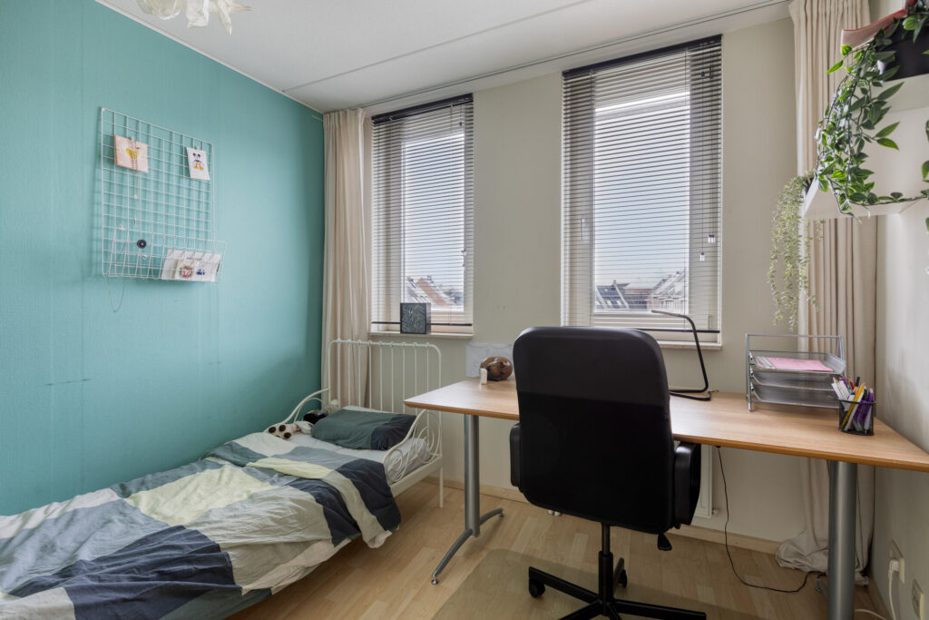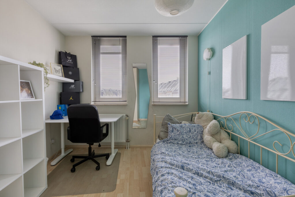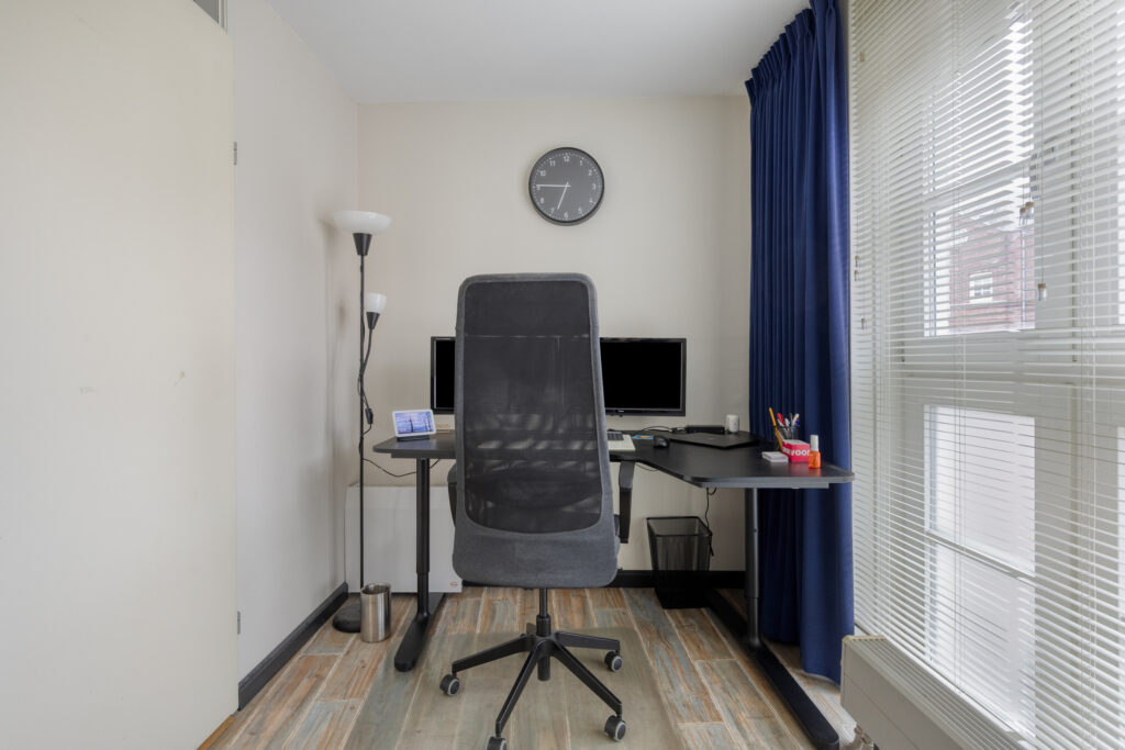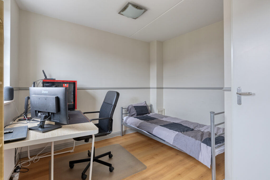 Op deze verdieping bevindt zich de ruime woonkamer met grote raampartijen, die zorgen voor een aangename lichtinval. Daarnaast is er een aparte kamer aanwezig die uitstekend geschikt is als werk-, speel- of slaapkamer.