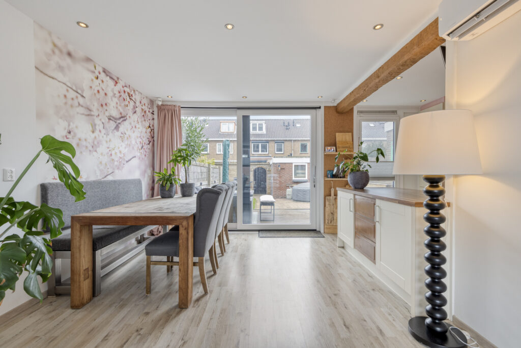 De woning is gebouwd in 1961 en staat op een perceel van 145 m². Bij binnenkomst valt direct de lichte doorzonwoonkamer op. Dankzij de grote raampartijen aan zowel de voor- als achterzijde geniet u hier van een prettige lichtinval gedurende de hele dag. De kunststof schuifpui aan de achterzijde verbindt binnen moeiteloos met buiten en geeft toegang tot de ruime, verzorgde achtertuin op het noordoosten. Hier kunt u in alle rust genieten van een kop koffie in de ochtendzon of lange zomeravonden met familie en vrienden. Achterin de tuin bevindt zich een vrijstaande stenen berging met elektra, ideaal voor fietsen, gereedschap of hobby’s.