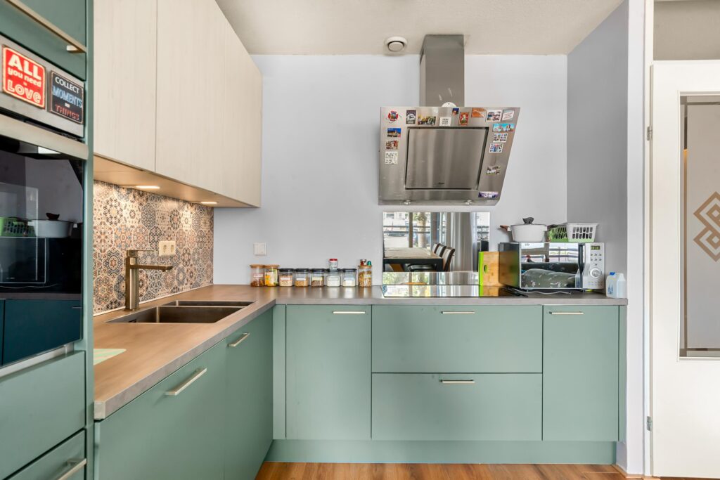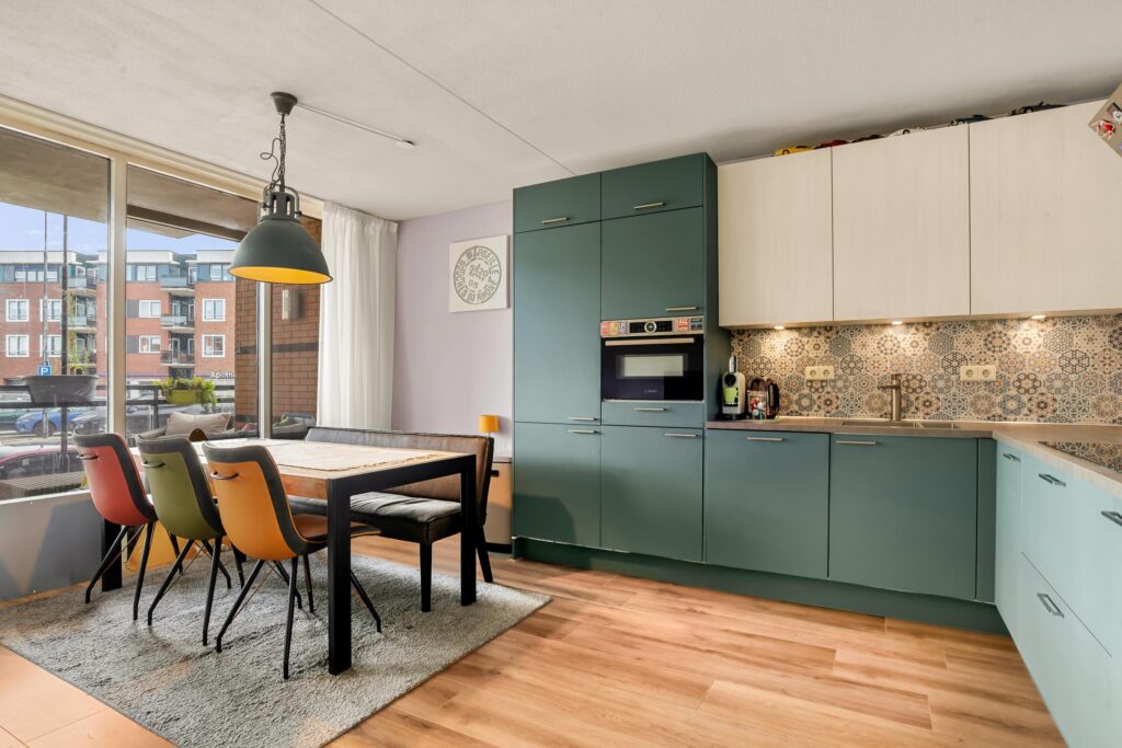 De open keuken, vernieuwd in 2021, is modern uitgevoerd in een hoekopstelling en voorzien van alle gewenste inbouwapparatuur (o.a. vaatwasser, combimagnetron, inductiekookplaat). Een heerlijke plek om te koken én te genieten. De badkamer het separate toilet zijn in 2017 en 2018 gemoderniseerd. Daarnaast beschikt het appartement over een handige was- en stookruimte.