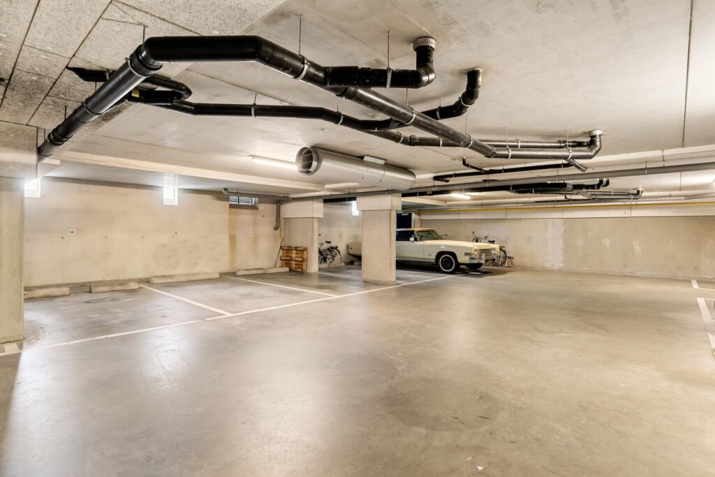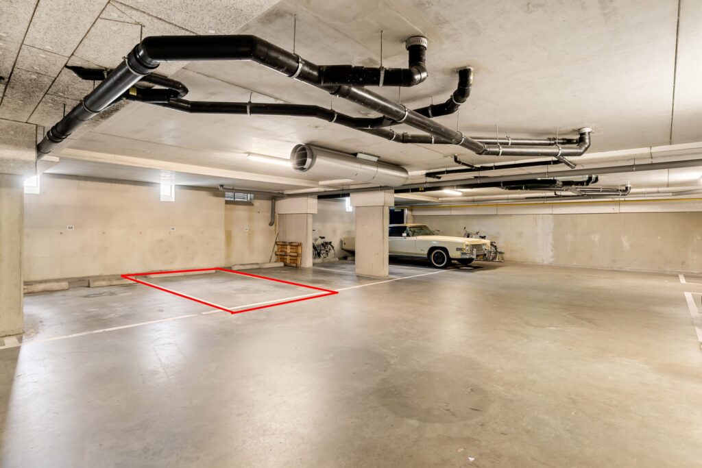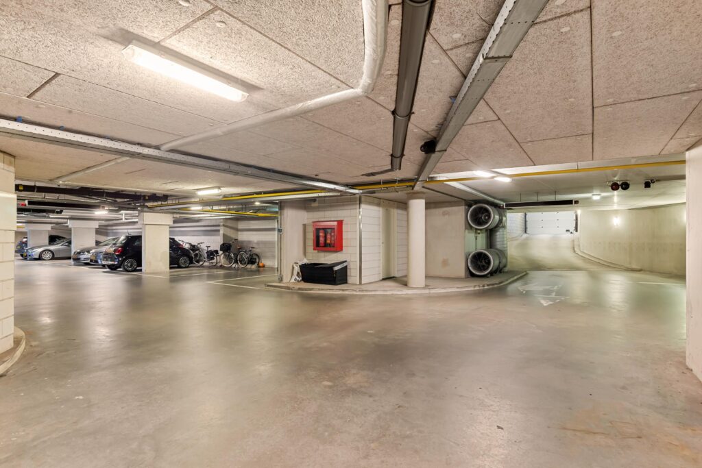 Geen parkeerstress: in de afgesloten parkeerkelder heeft u een eigen parkeerplaats en een berging tot uw beschikking. Ideaal voor fietsen, opslag of hobbyspullen.