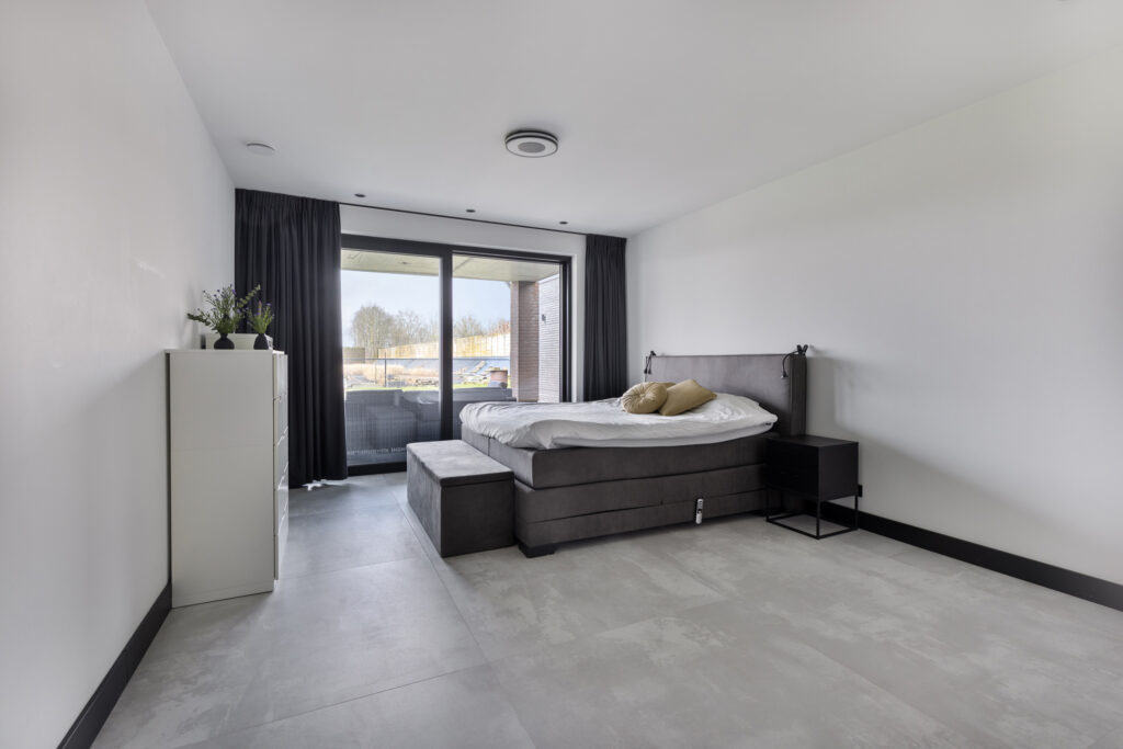 Deze slaapkamer is gelegen aan de achterzijde van de woning en biedt daarmee prachtig uitzicht op de tuin. De kamer is voorzien van een schuifpui, dus je stapt zo op het overdekte terras. Dat is heerlijk wakker worden! De slaapkamer heeft een oppervlakte van maar liefst 21m². Deze kamer is ook uitermate geschikt als kantoor of speelkamer.
