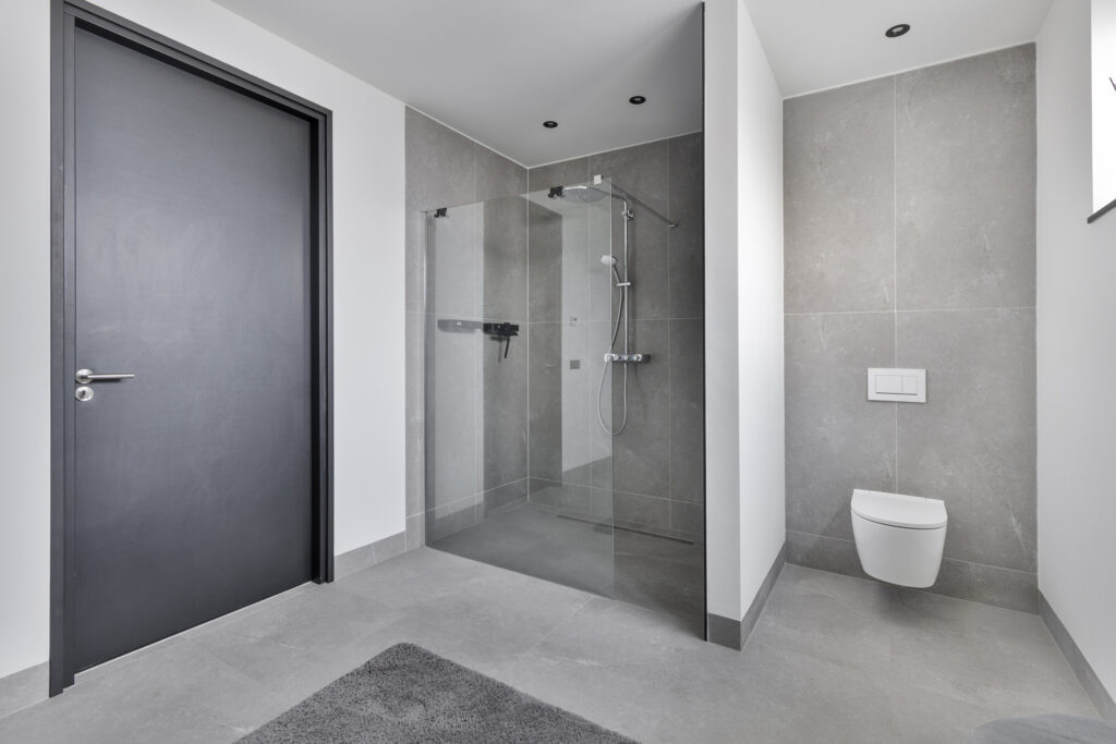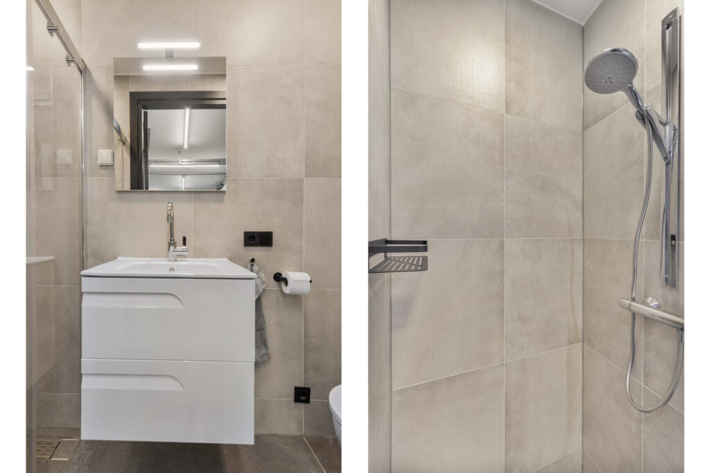 Deze is keurig afgewerkt met plafondhoge betegeling.