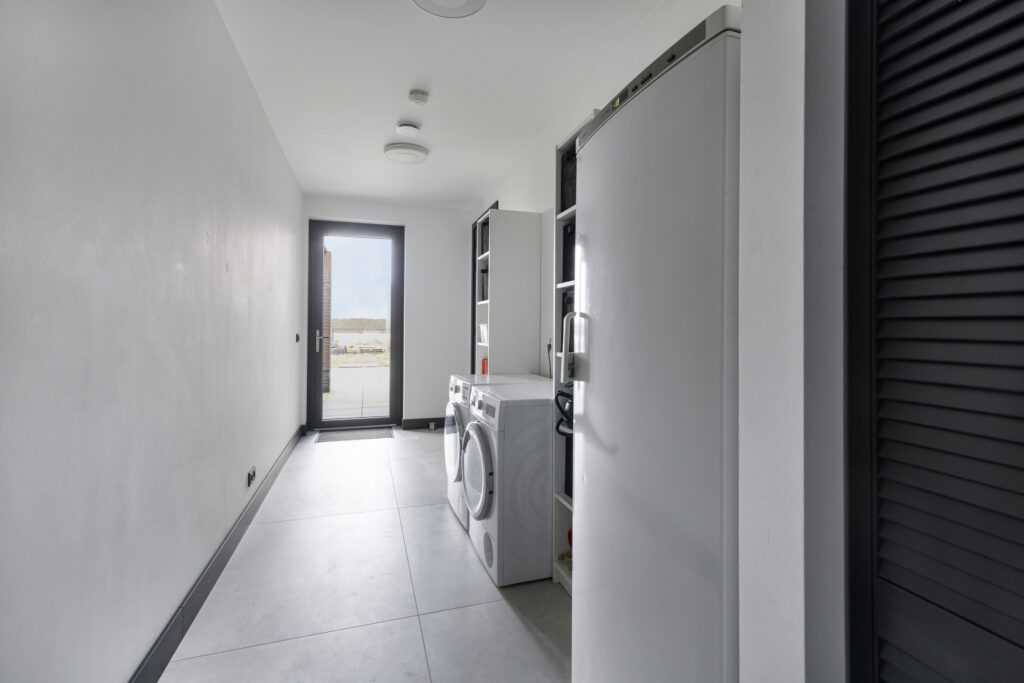 Praktische ruimte voor de was(apparatuur), een extra diepvries en opbergmogelijkheden voor diverse spullen. Ruim van opzet dus volop mogelijkheden om deze in te richten. In de bijkeuken is tevens de meterkast aanwezig.