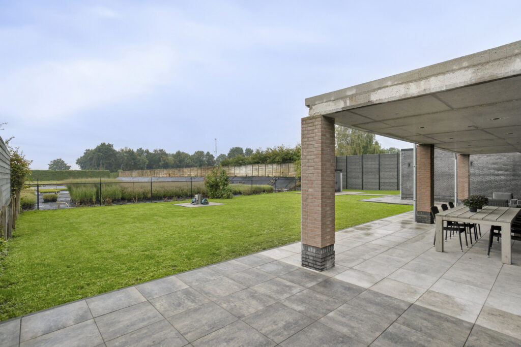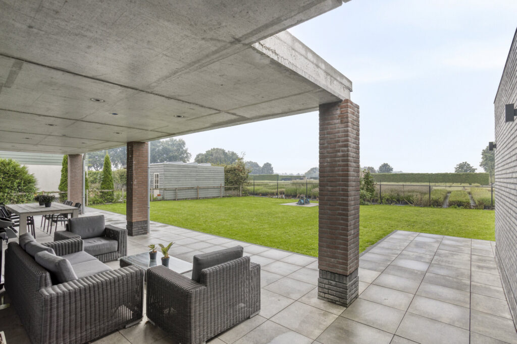 Het overdekte terras is een fijne beschutte plek om heerlijk te relaxen. Door de tuinligging op het noordwesten, kan hier ook genoten worden van de avondzon. De overkapping is voorzien van inbouwspots en elektrapunten voor extra verlichting of een warmtelamp. Door de oppervlakte van maar liefst zo’n 50m² is er meer dan voldoende plek voor een eetgedeelte en loungeset.