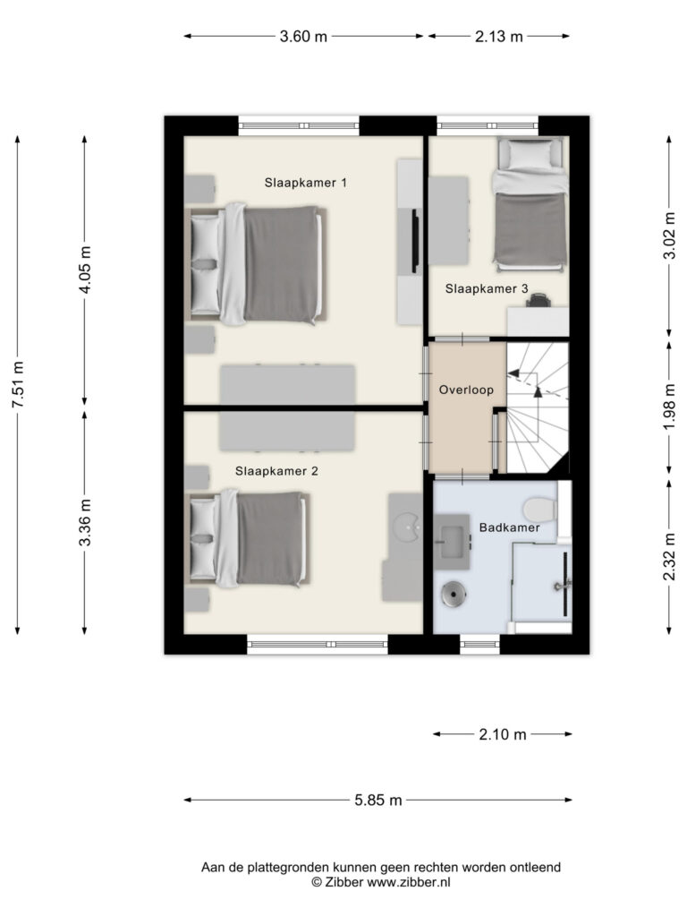 Vanaf deze overloop heeft u toegang tot de badkamer en de 3 slaapkamers op deze verdieping.