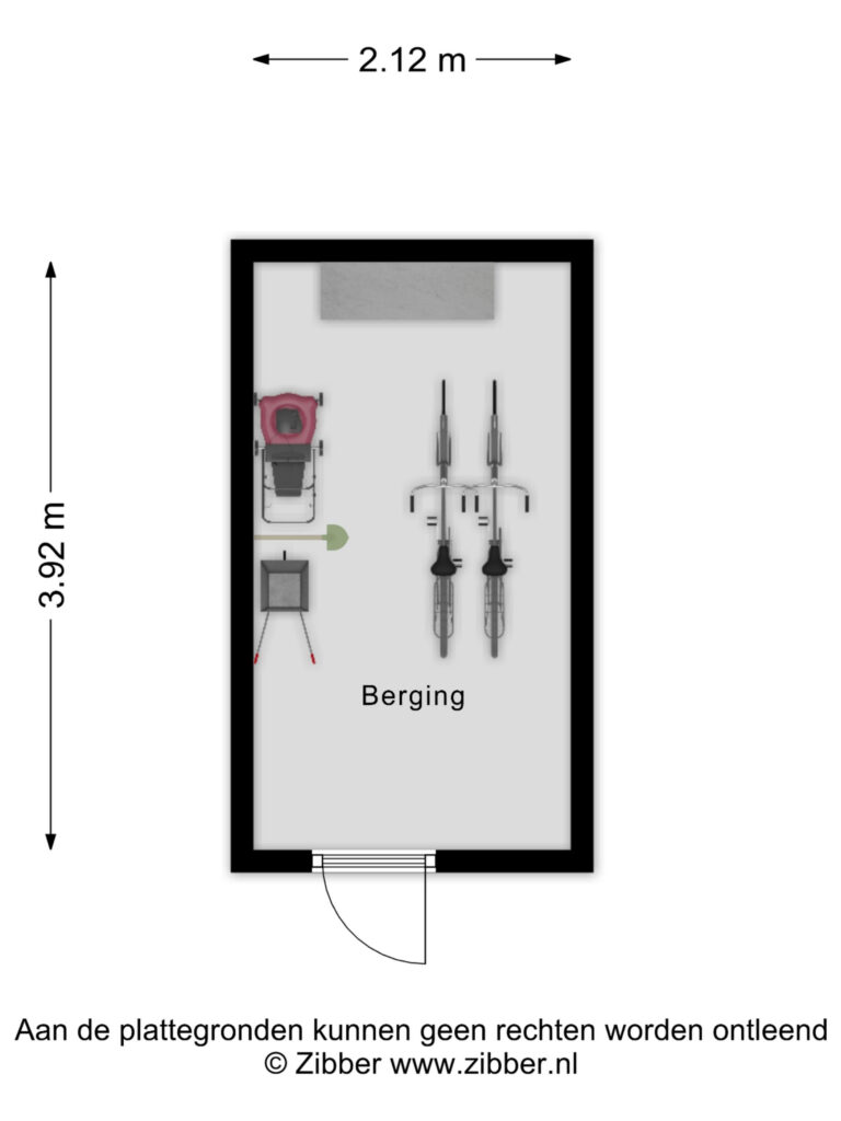 Deze halfsteens berging (van ± 2.12. x 3.92 m.) is eveneens voorzien van een kunststof deur met HR++ glas, een tegelvloer, elektra en lichtpunten en een (naar alle waarschijnlijkheid asbesthoudend) golfplaten dak.