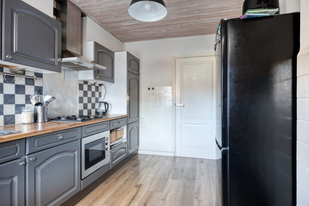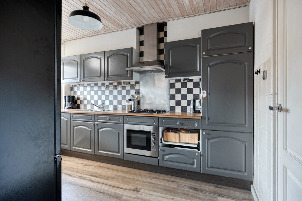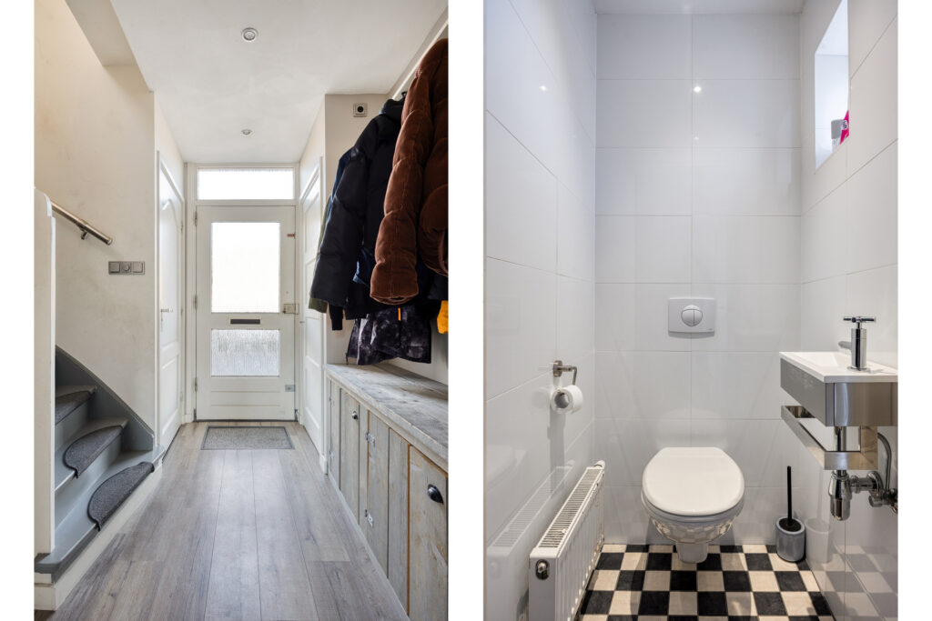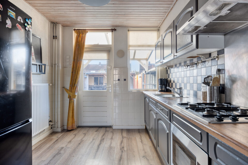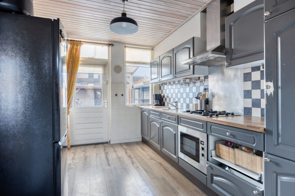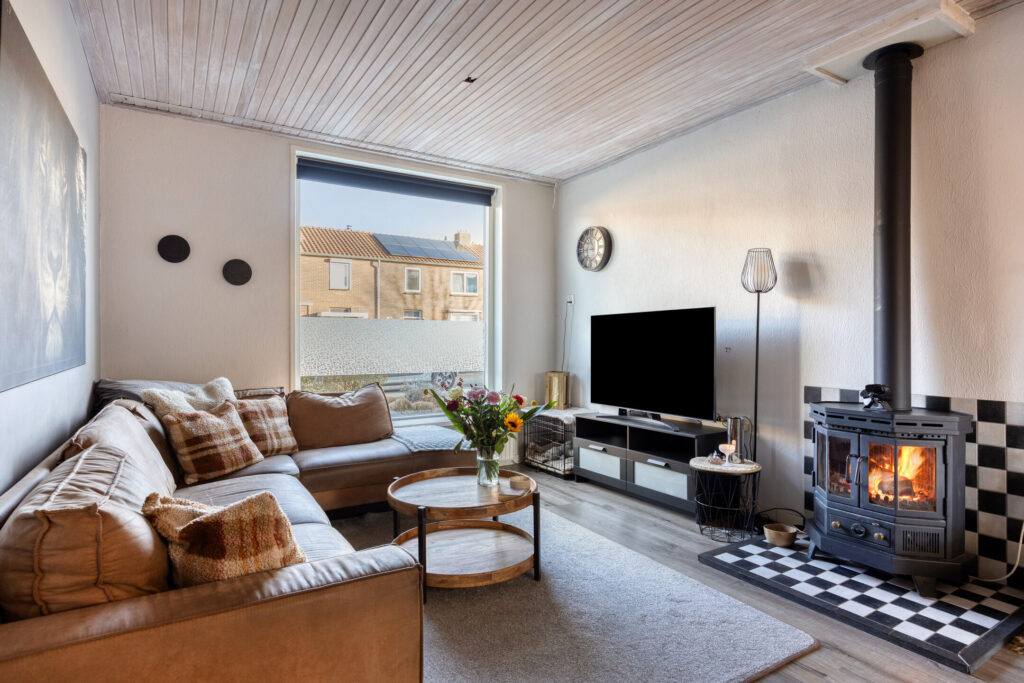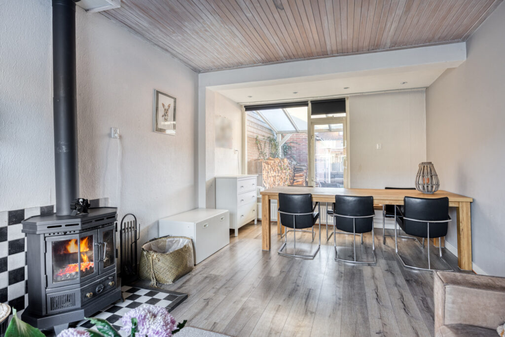 Via de entree/hal met toilet, meterkast en trapopgang bereikt u de ruime woonkamer. Dankzij de grote raampartijen aan zowel de voor- als achterzijde geniet u hier van veel natuurlijk licht. Een houtkachel zorgt voor een gezellig vuurtje in de koude wintermaanden. De keuken is opgesteld in een rechte wand en voorzien van diverse inbouwapparatuur, waaronder een gaskookplaat, afzuigkap, vaatwasser, koelkast en combi-magnetron. Vanuit de keuken is er directe toegang tot de achtertuin.