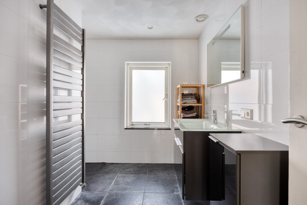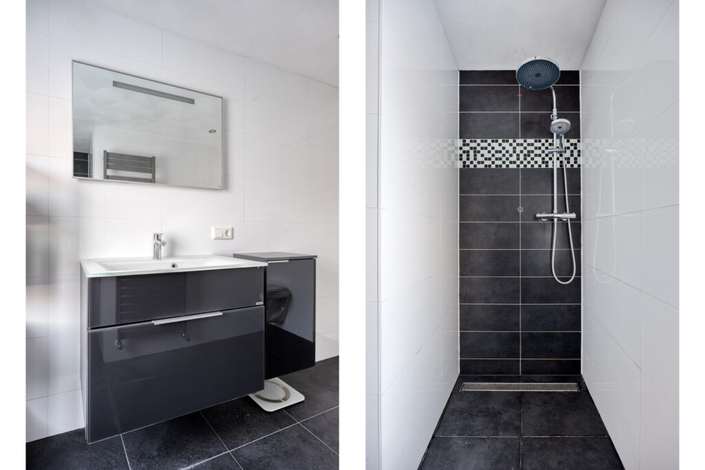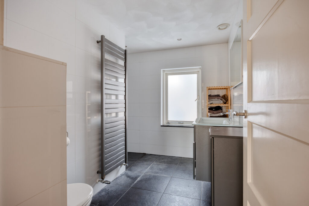 Op de eerste verdieping bevinden zich drie ruime slaapkamers en een nette, geheel betegelde badkamer (2012), ingericht met een douche, toilet en wastafel. Daarnaast is er een aparte ruimte voor de wasapparatuur.