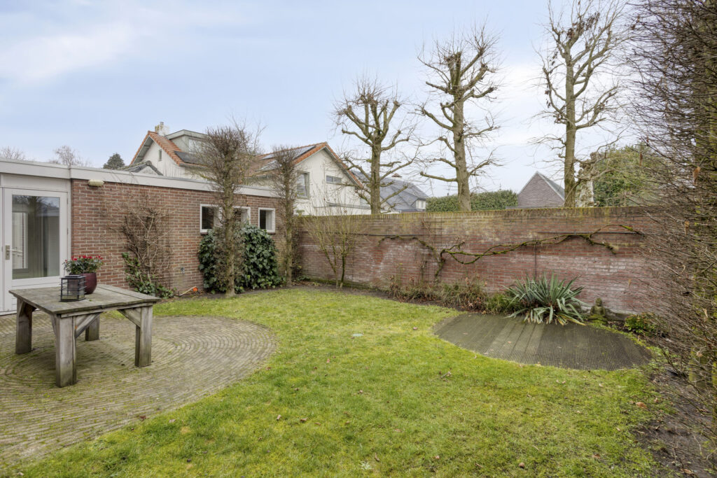 Fraai aangelegde voortuin met sierbestrating, gazon en beplanting. De royale oprit naast de woning biedt plaats aan meerdere auto’s. De achtertuin beschikt over diverse terrassen en is ingericht met sierbestrating, gazon en volwassen beplanting, wat zorgt voor een prettige en groene buitenruimte.