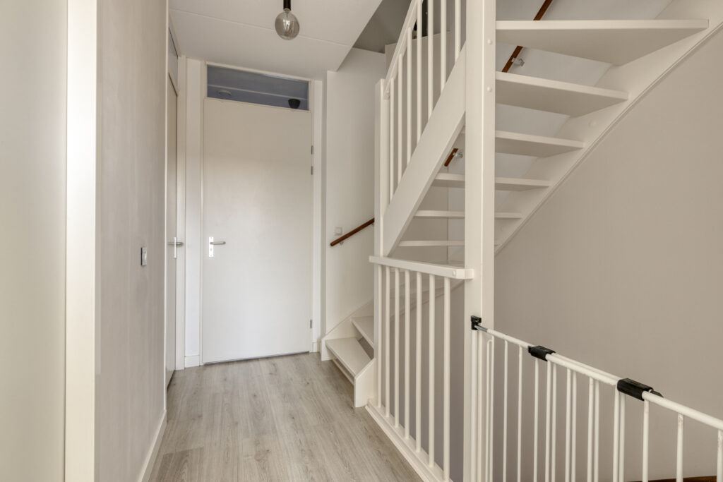 Via de verzorgde voortuin bereikt u de entree van de woning. In de hal bevinden zich de meterkast, de modern afgewerkte toiletruimte en de trapopgang naar de eerste verdieping. De hal is afgewerkt met een pvc-vloer met vloerverwarming.