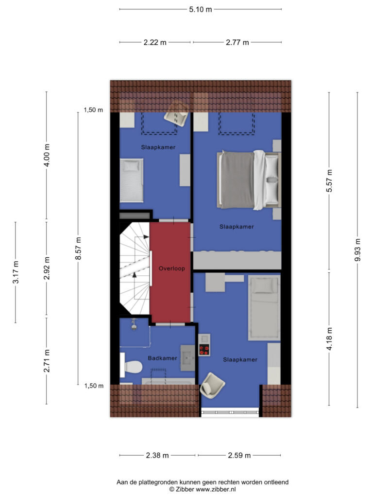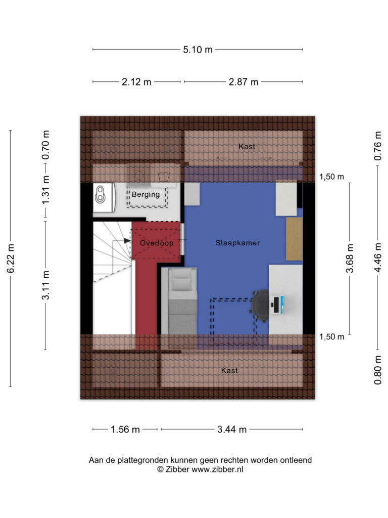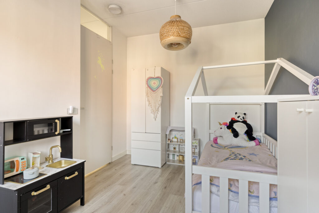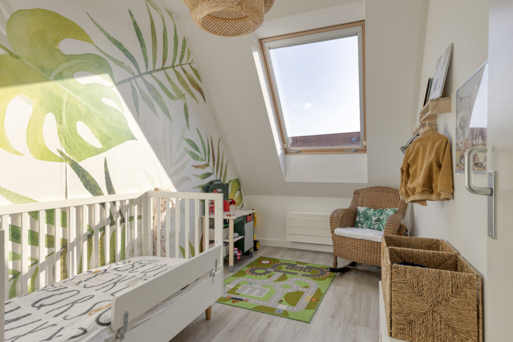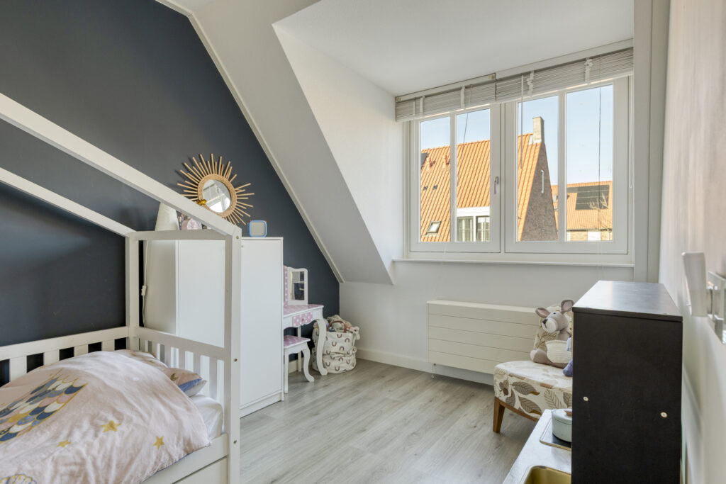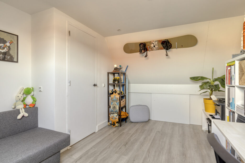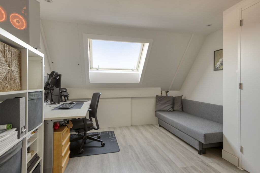 De vierde slaapkamer is voorzien van een pvc-vloer en een dakraam. Onder de kapschuinte bevindt zich praktische bergruimte.