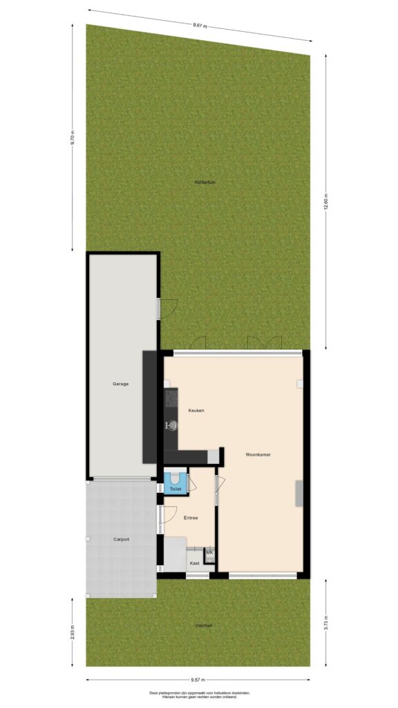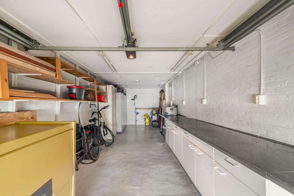 De ruime garage (ca. 9,5 meter lang en 2,87 meter breed) biedt volop mogelijkheden voor opslag, hobby of het stallen van uw auto.