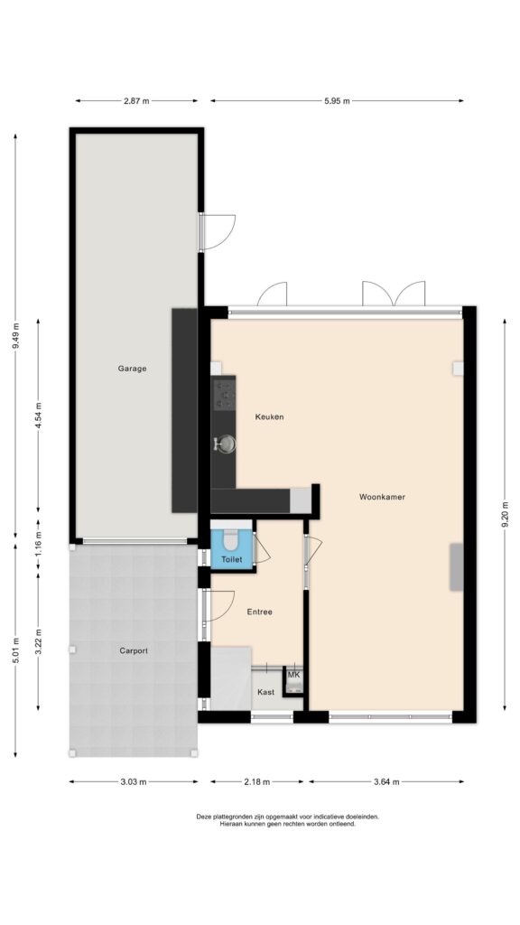 – aangebouwde stenen garage met een lengte van 9,5 meter