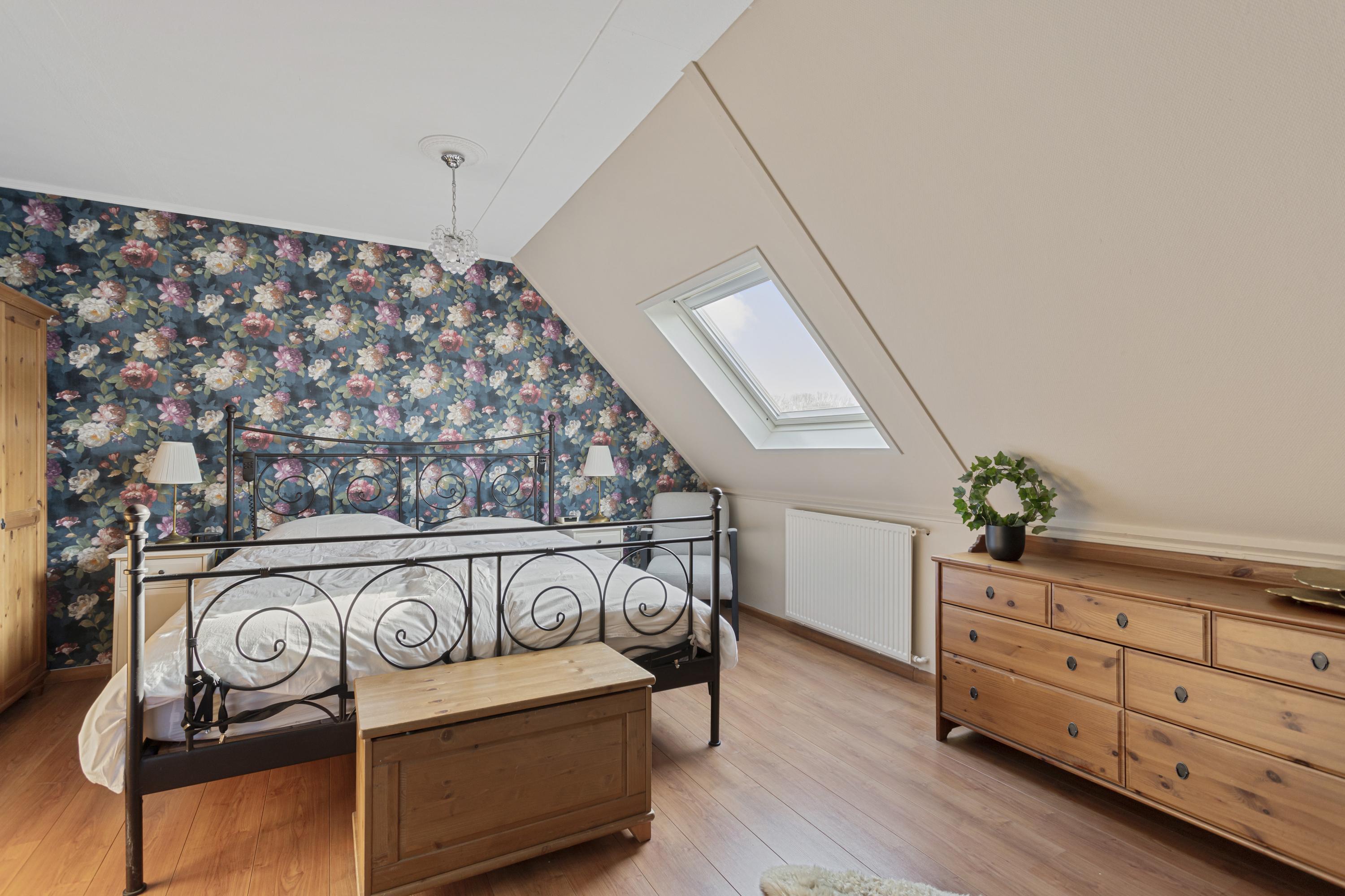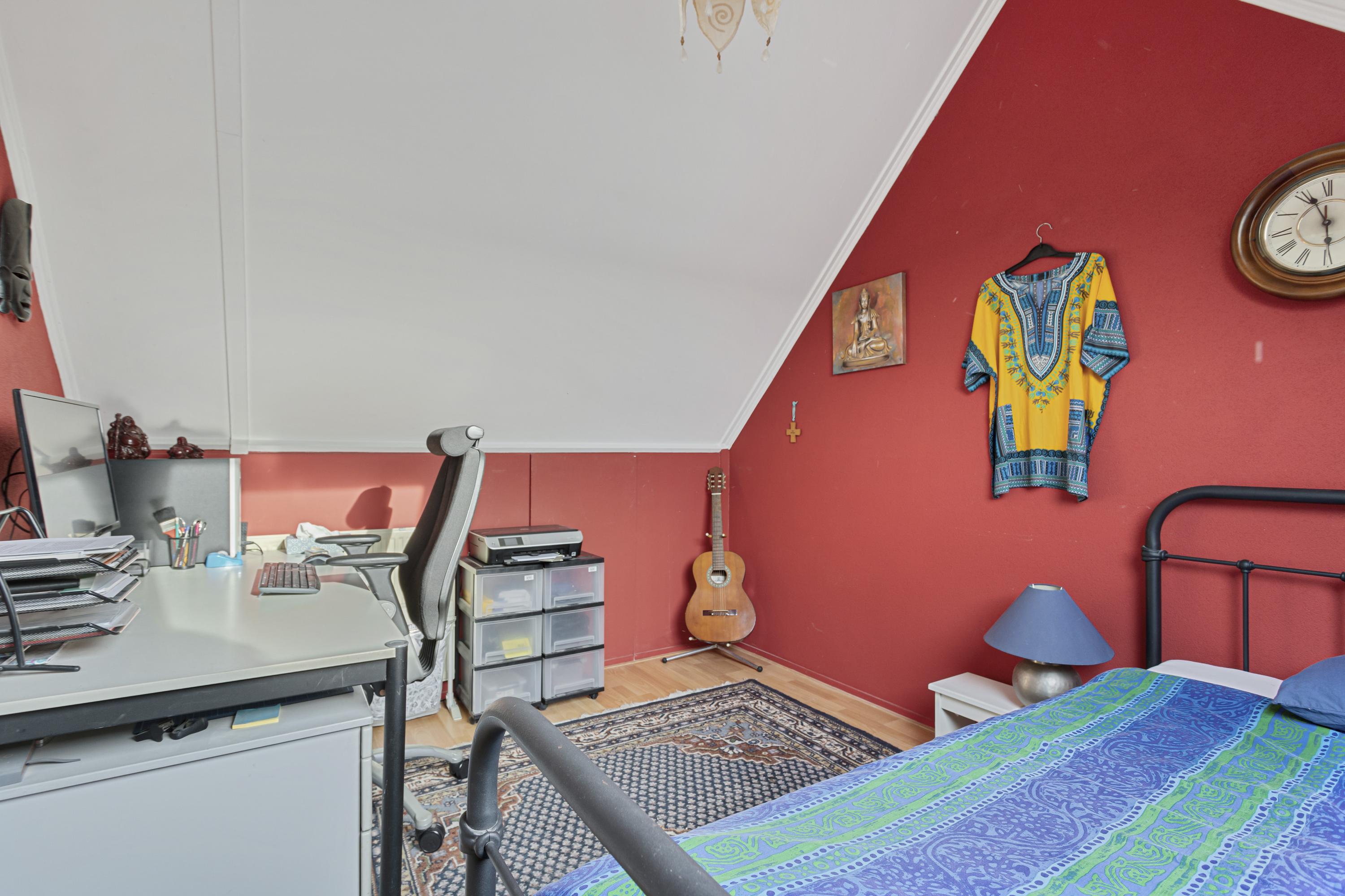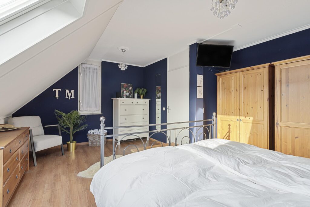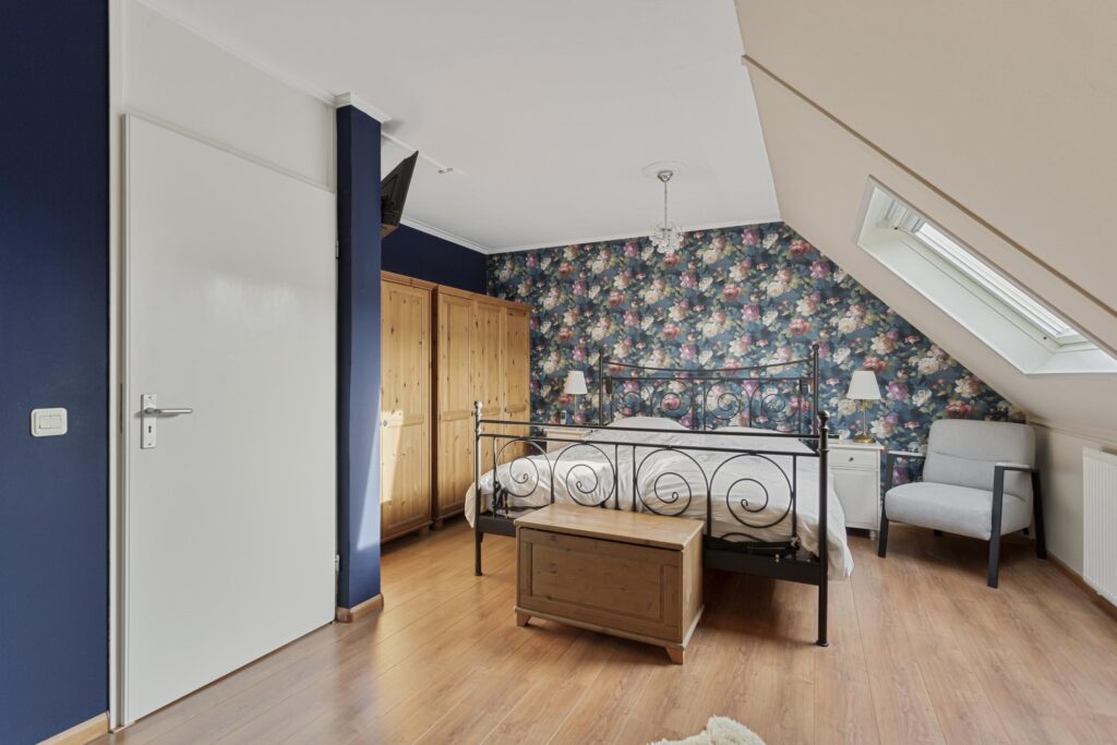 Zeer royale (ouder) slaapkamer gelegen aan de achterzijde met laminaatvloer en enorm veel lichtinval middels het VELUX-dakraam (met verduistering) en zijraam (met rolluik). Deze kamer is eenvoudig terug te brengen naar de oorspronkelijke 2 slaapkamers indien gewenst.