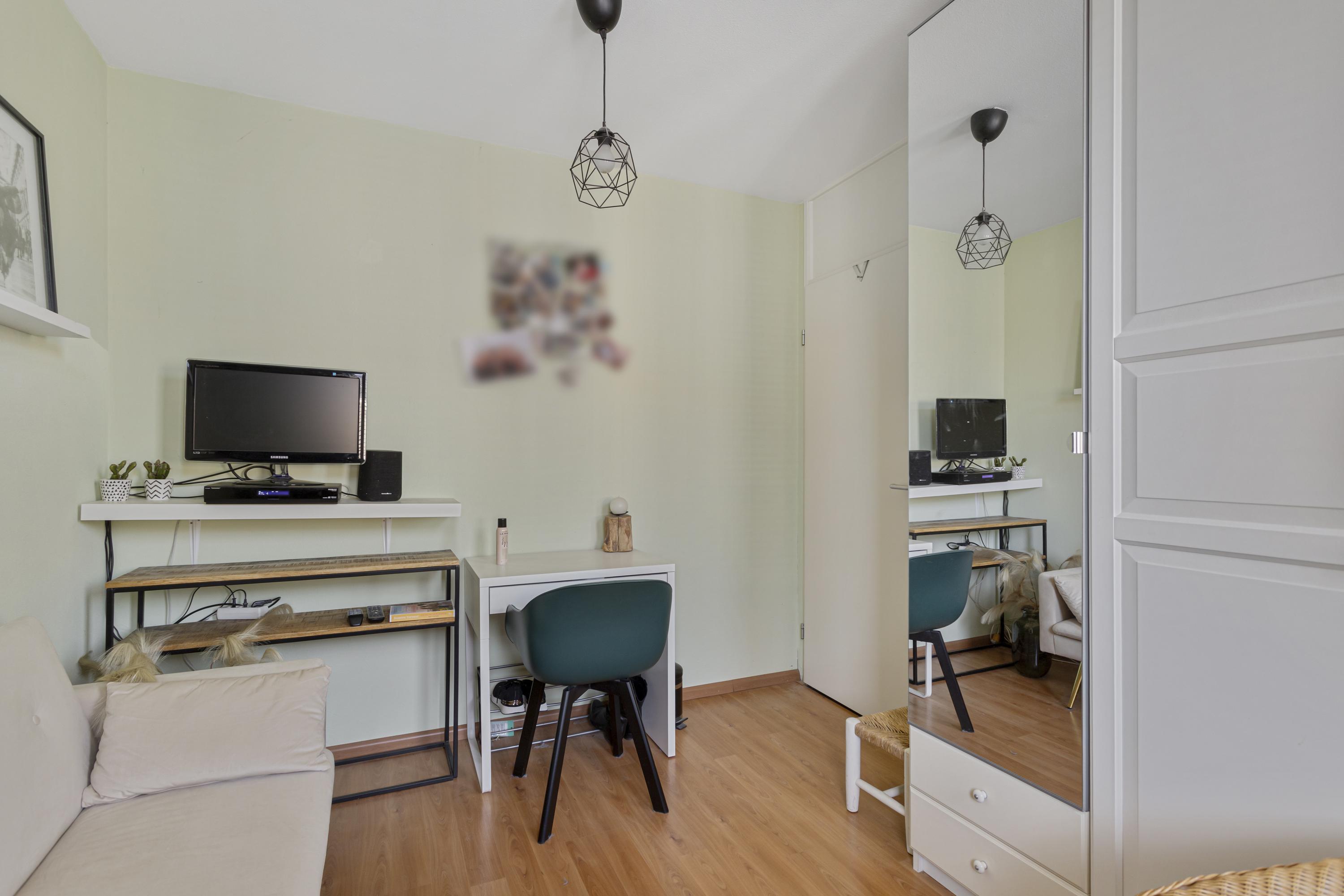 Gelegen aan de voorzijde van de woning met laminaatvloer en hardhouten kozijn.
