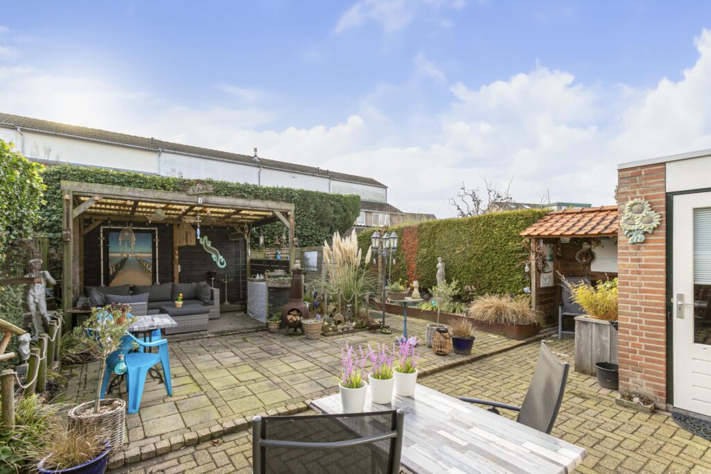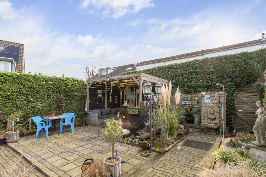 – Achtertuin gelegen op het zonnige zuiden met overkapping, buitendouche en een achterom
