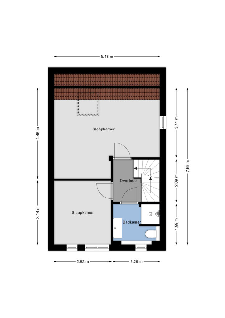 Overloop met toegang tot 2 slaapkamers en de badkamer.