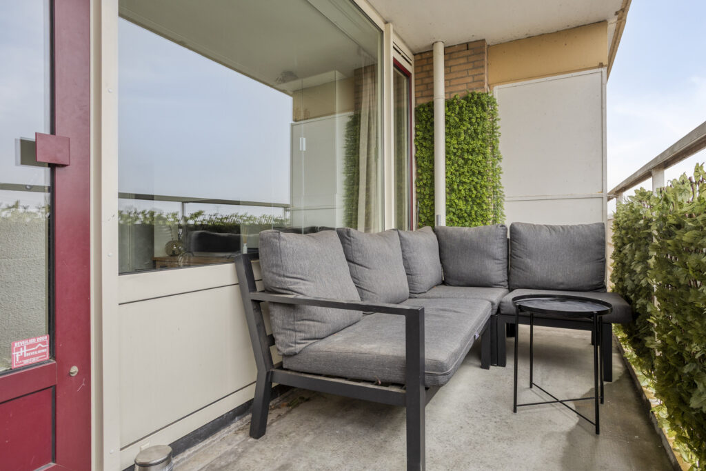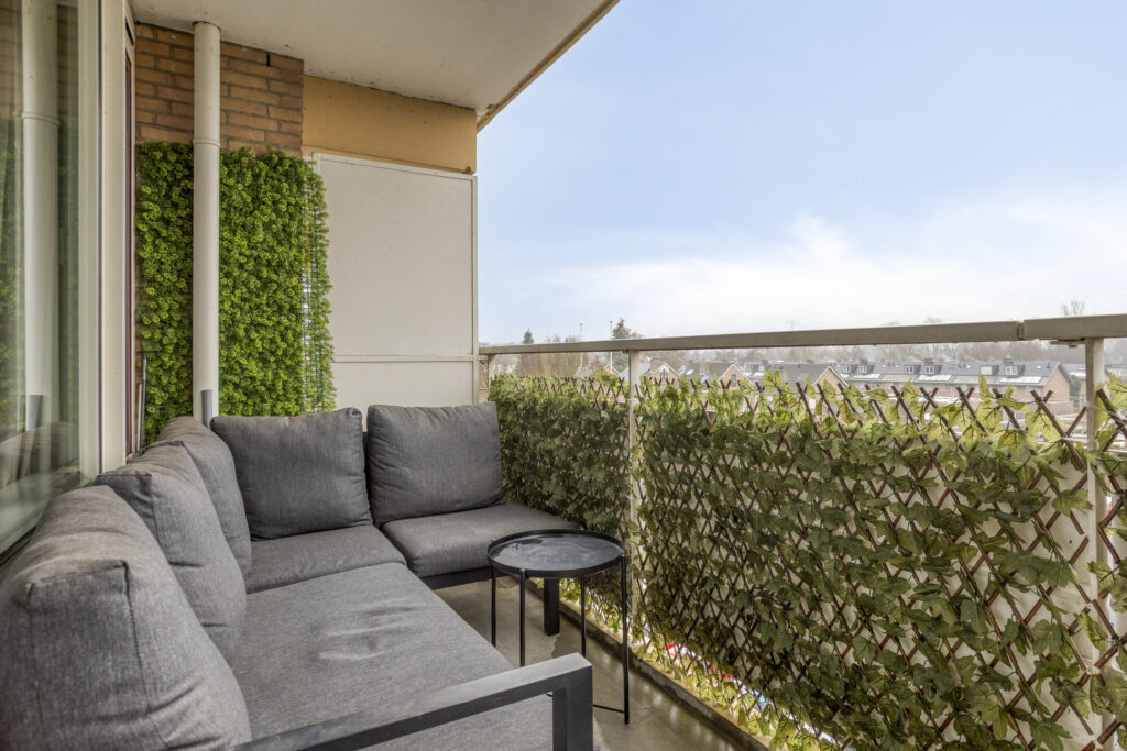 Het balkon is heerlijk ruim om samen te genieten van een kop koffie of een drankje met vrienden. Je kijkt vanaf hier uit over de wijk en natuur.