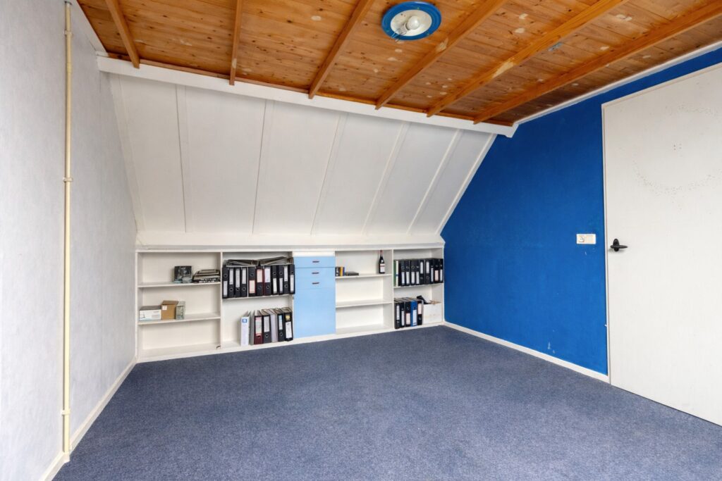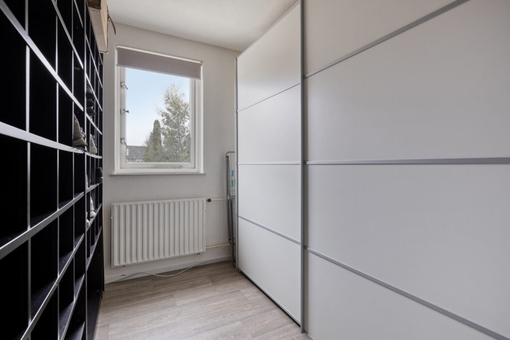 2e Verdieping: via de vaste trap bereikbare voorzolder met bergruimte; stookruimte met de HR CV ketel en aansluiting voor de wasmachine en droger. De 4e slaapkamer heeft een dakraam en een woonoppervlakte van plm. 13,5 m2 (het vloeroppervlak is groter). Er is boven de kamer nog een handige bergvliering.