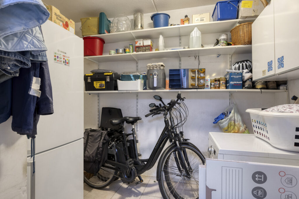 Berging/wasruimte is voorzien van een tegelvloer met aansluiting voor wasapparatuur en opstelling cv-ketel (2023).